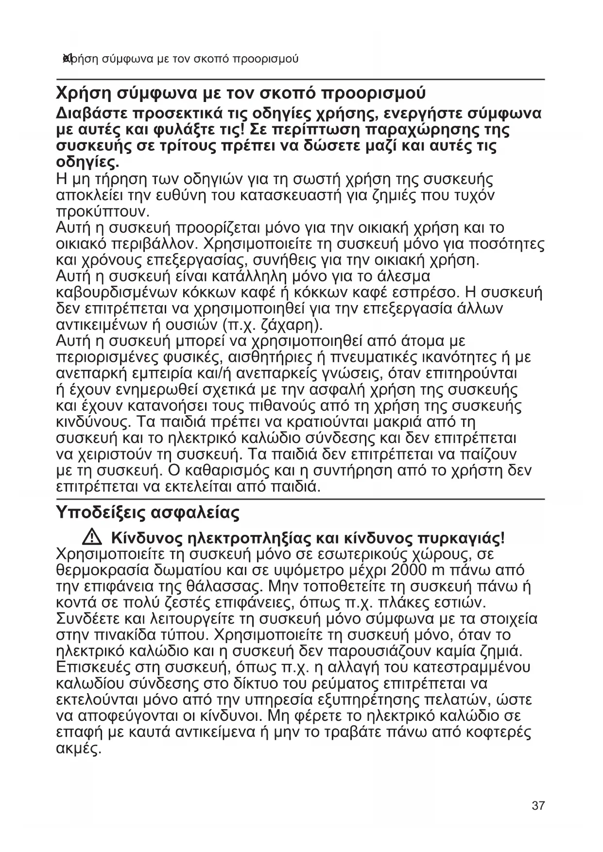 - Περιεχόμενα Χρήση σύμφωνα με τον σκοπό προορισμού p. 37