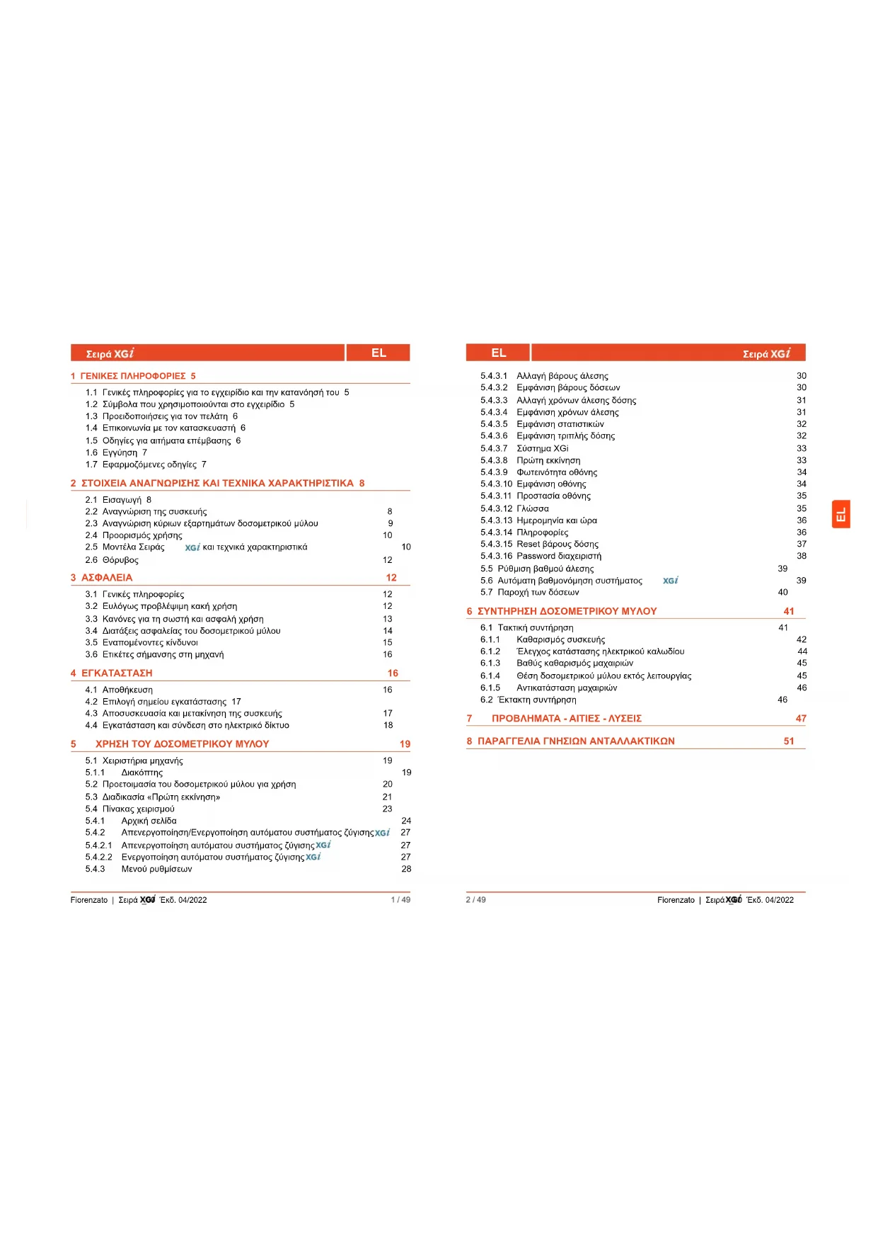 7 ΠΡΟΒΛΗΜΑΤΑ - ΑΙΤΙΕΣ - ΛΥΣΕΙΣ 47 8 ΠΑΡΑΓΓΕΛΙΑ ΓΝΗΣΙΩΝ ΑΝΤΑΛΛΑΚΤΙΚΩΝ 51EL Fiorenzato | Σειρά _00 Έκδ. 04/2022 3 / 49