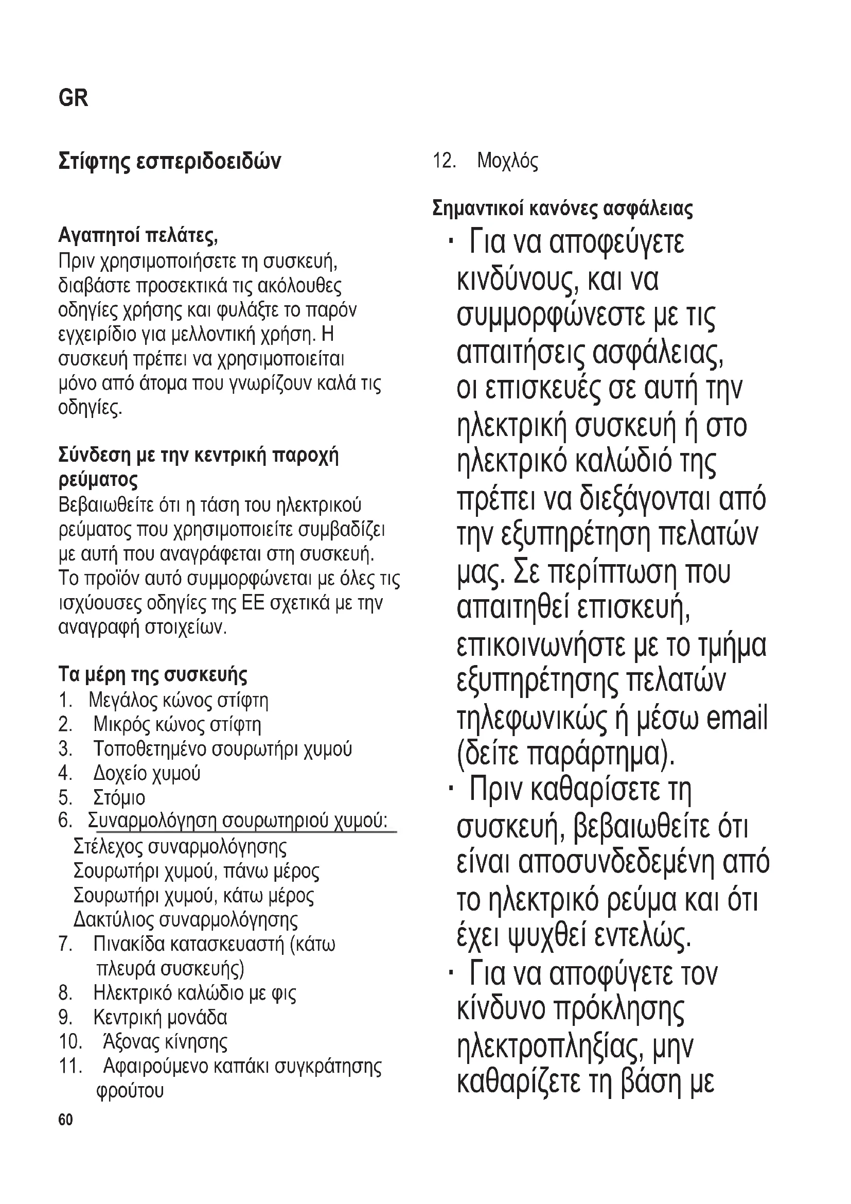 Βεβαιωθείτεότιητάσητουηλεκτρικού ρεύματοςπουχρησιμοποιείτεσυμβαδίζει μεαυτήπουαναγράφεταιστησυσκευή. Τοπροϊόναυτόσυμμορφώνεταιμεόλεςτις ισχύουσεςοδηγίεςτηςΕΕσχετικάμετην αναγραφήστοιχείων. Τα μέρη της συσκευής