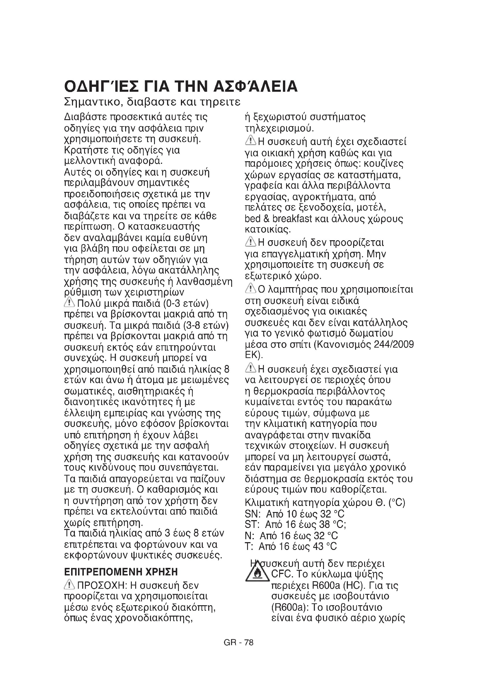 Θερμ. περιβ. (°C) SN: Από 10 έως 32 °C ST: Από 16 έως 38 °C. N: Από 16 έως 32 °C T: Από 16 έως 43 °CGR - 84
