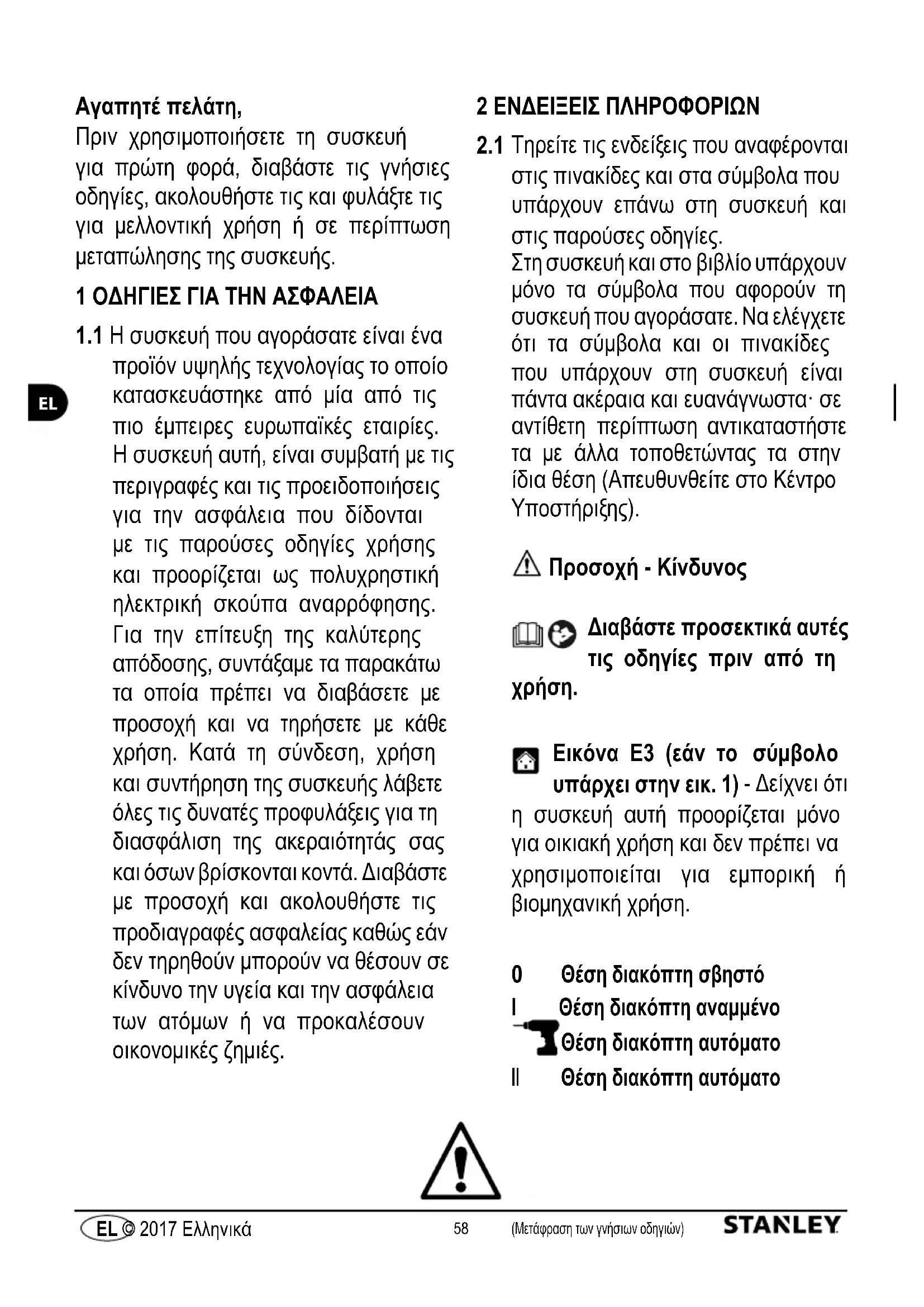 Θέση διακόπτη αυτόματο58 59 (Μετάφραση των γνήσιων οδηγιών) EL © 2017 Ελληνικά (Μετάφραση των γνήσιων οδηγιών) EL © 2017 Ελληνικά