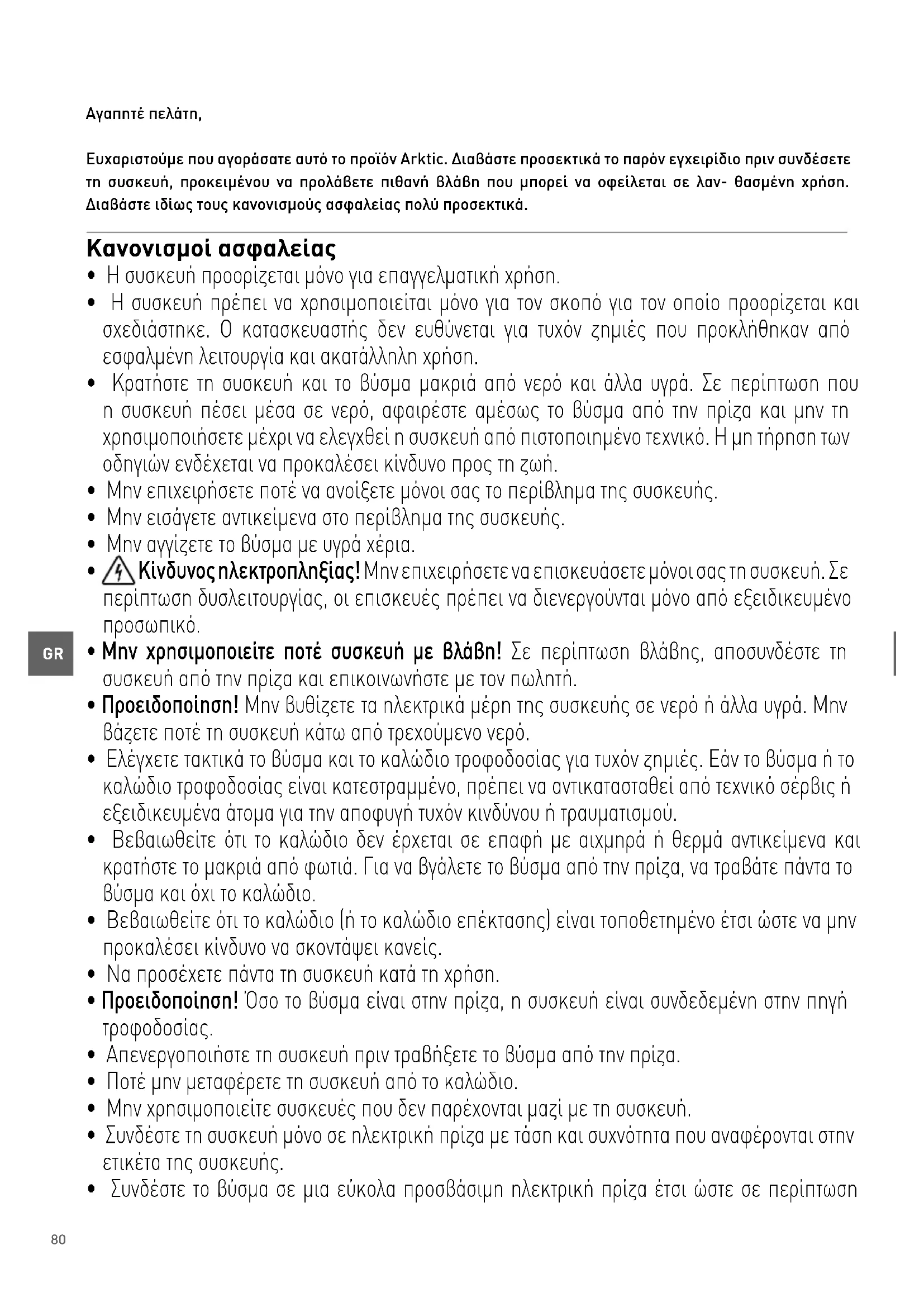 Αγαπητέ πελάτη, Ευχαριστούμε που αγοράσατε αυτό το προϊόν Arktic. Διαβάστε προσεκτικά το παρόν εγχειρίδιο πριν συνδέσετε τη συσκευή, προκειμένου να προλάβετε πιθανή βλάβη που μπορεί να οφείλεται σε λαν- θασμένη χρήση. Διαβάστε ιδίως τους κανονισμούς ασφαλείας πολύ προσεκτικά. Κανονισμοί ασφαλείας