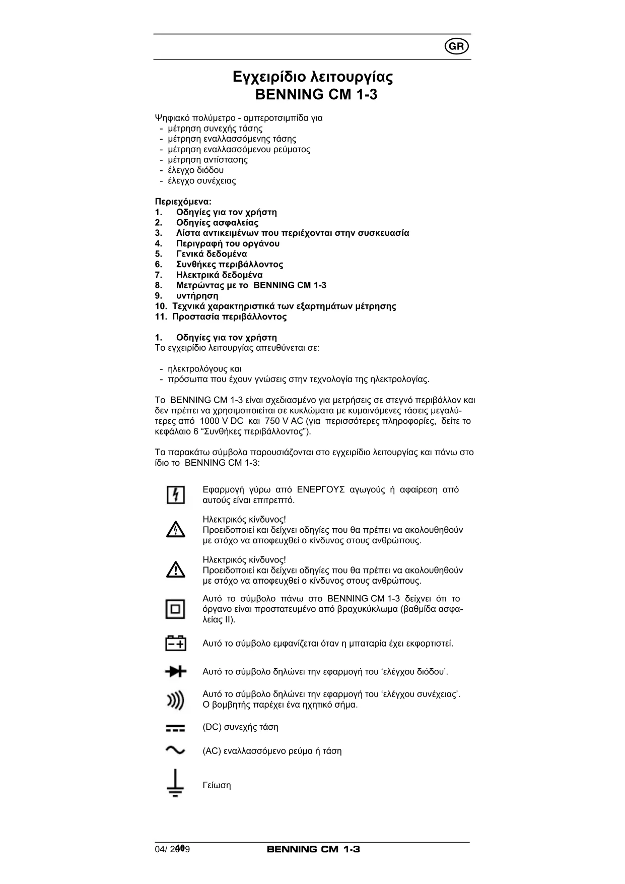 Σe autες τις περπιτωείς το BENNING CM 1-3 πρέτηνα κλείσει, να ατομακρυνθεί από τα Μημεία μέτρησε καιν μύνξαναχροσιμοῦθεί.