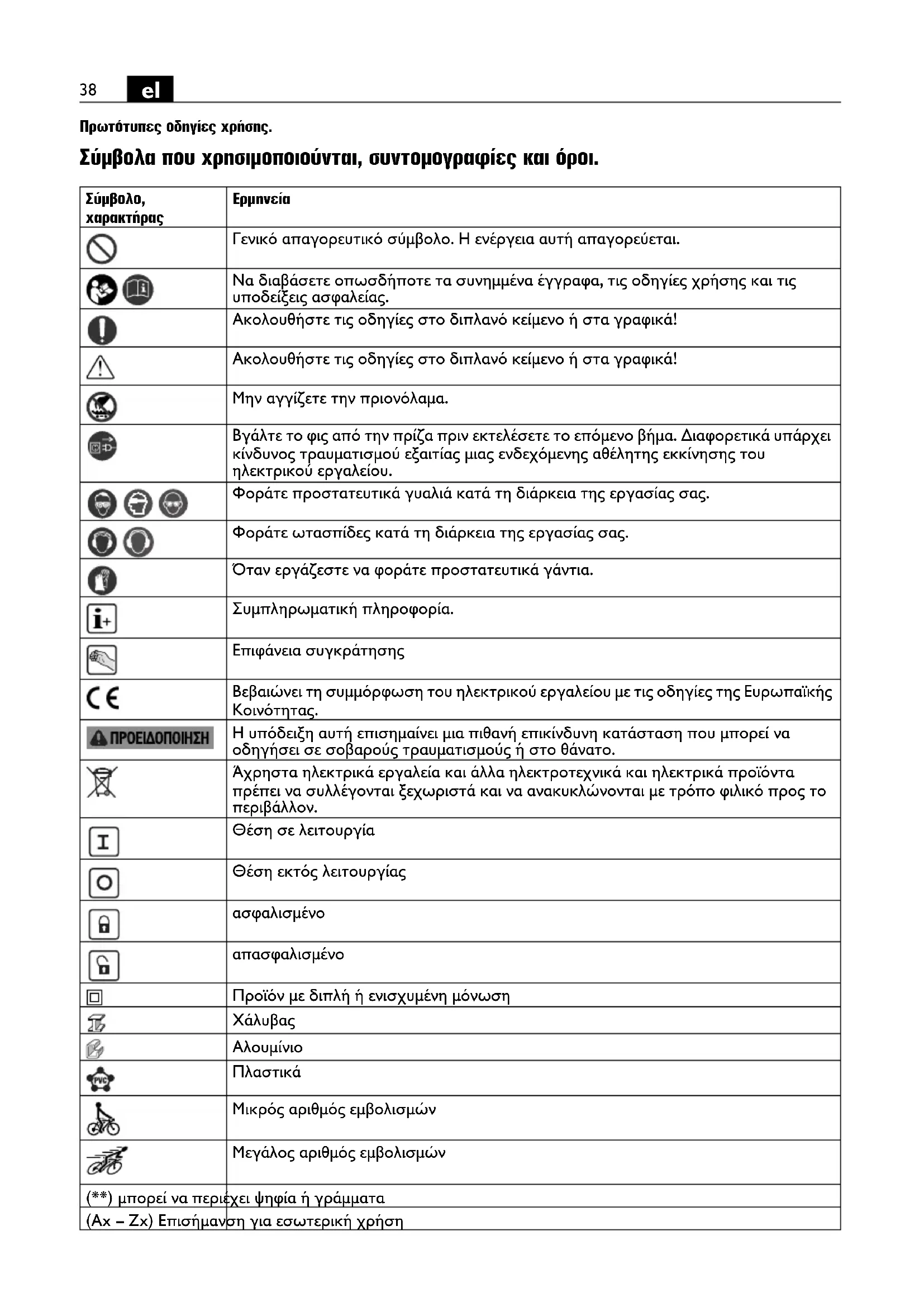 Πρωτότυπες οδηγίες χρήσης. Σύμβολα που χρησιμοποιούνται, συντομογραφίες και όροι.