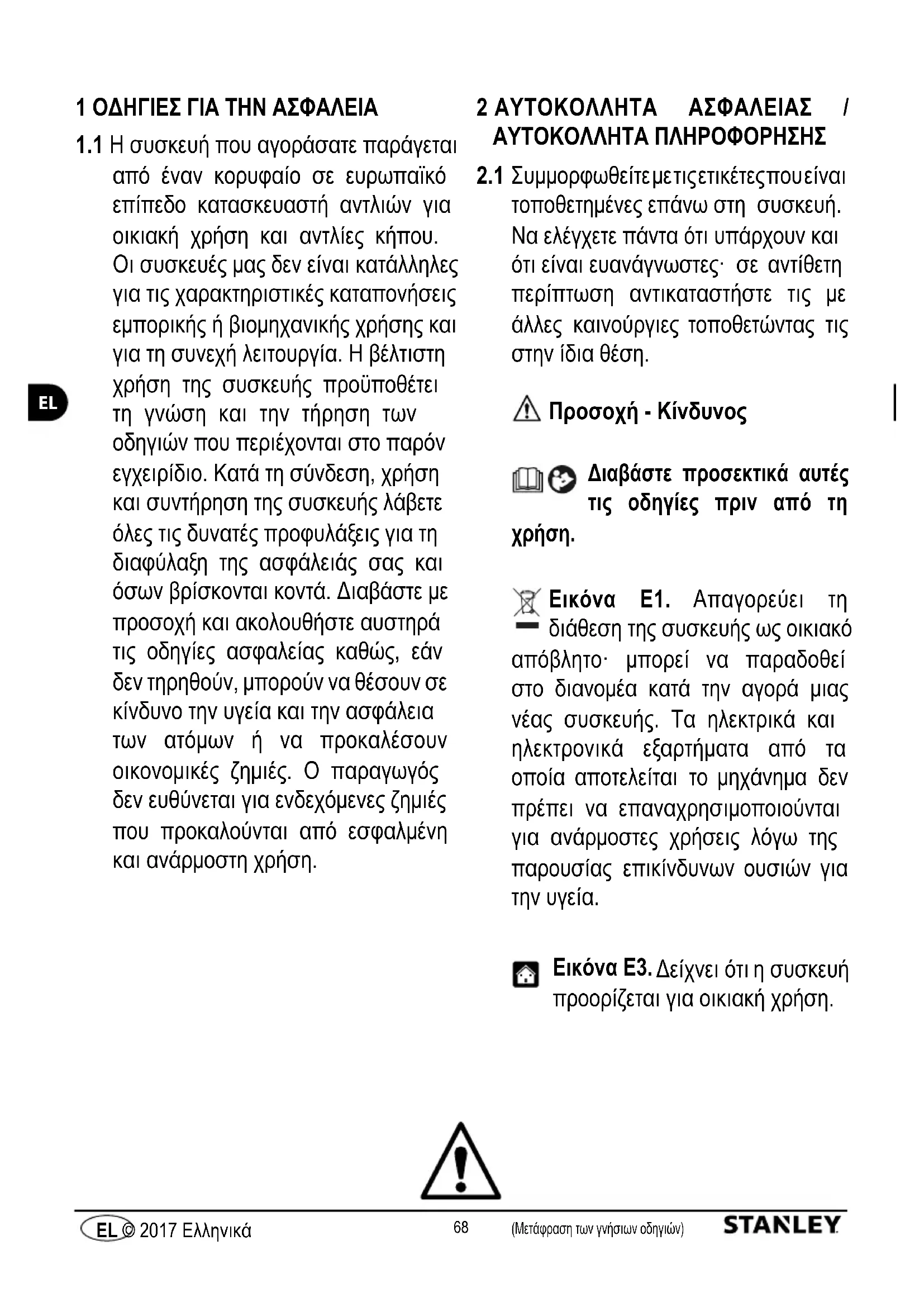 2.1 Συμμορφωθείτε μετιςετικέτες που είναι τοποθετημένες επάνω στη συσκευή. Να ελέγχετε πάντα ότι υπάρχουν και ότι είναι ευανάγνωστες· σε αντίθετη περίπτωση αντικαταστήστε τις με άλλες καινούργιες τοποθετώντας τις στην ίδια θέση.