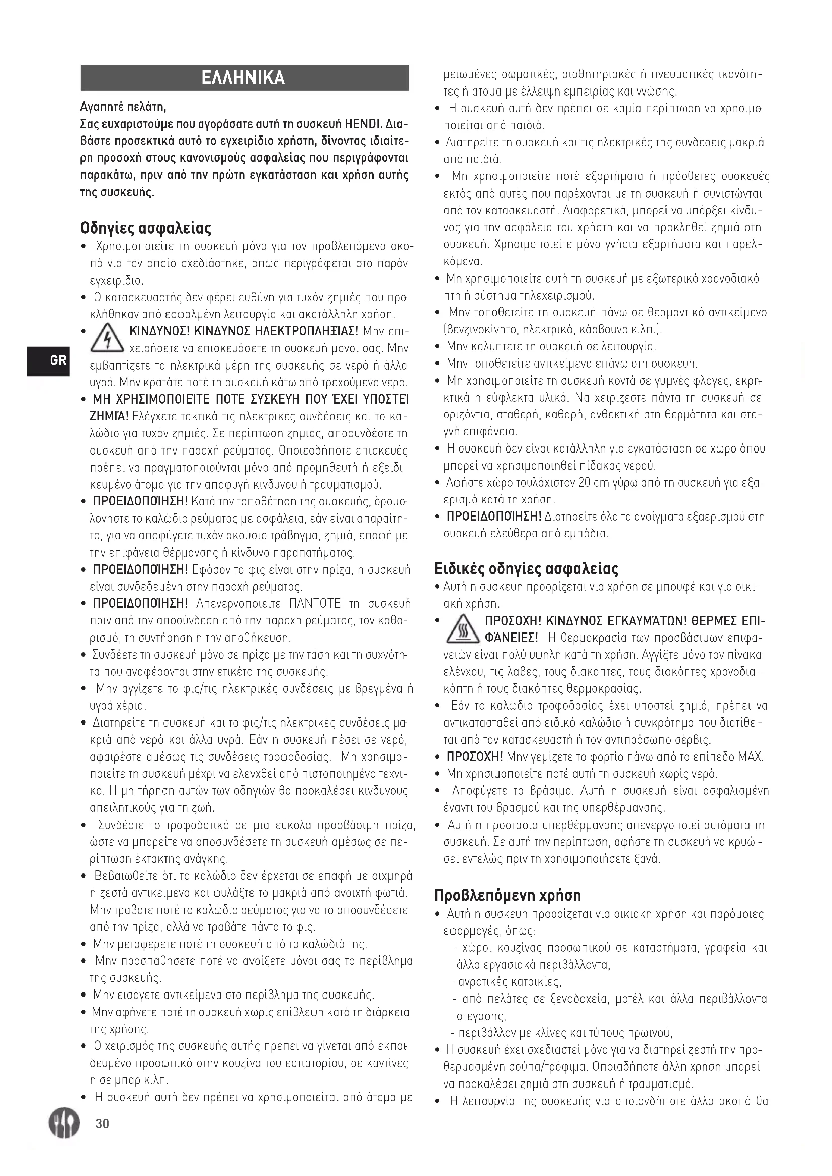 - Χρησιμοποιείτε τη συσκευή μόνο για τον προβλεπόμενο σκο- πό για τον οποίο σχεδιάστηκε, όπως περιγράφεται στο παρόν εγχειρίδιο.