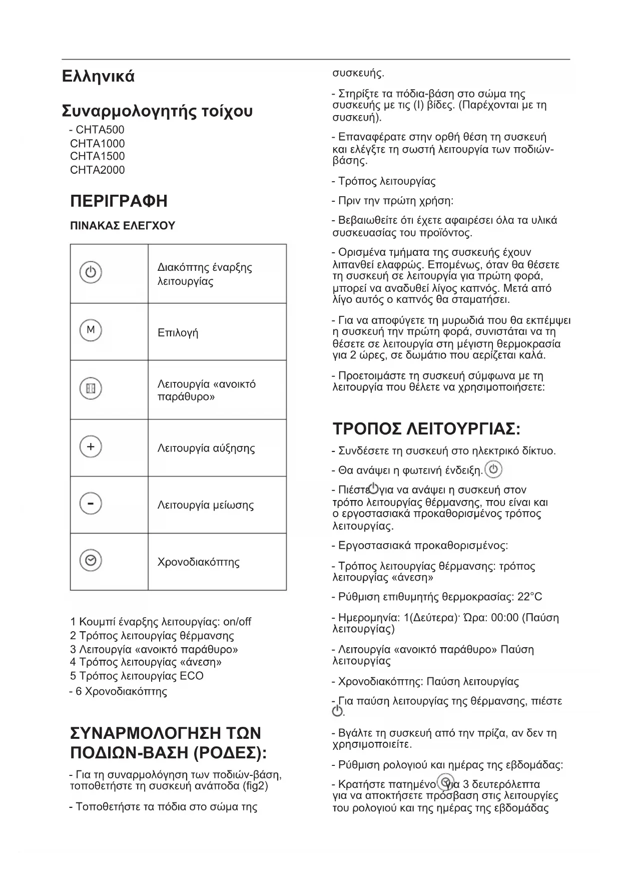 CHTA500 - Θέρμανση TAURUS - Δωρεάν εγχειρίδιο χρήσης