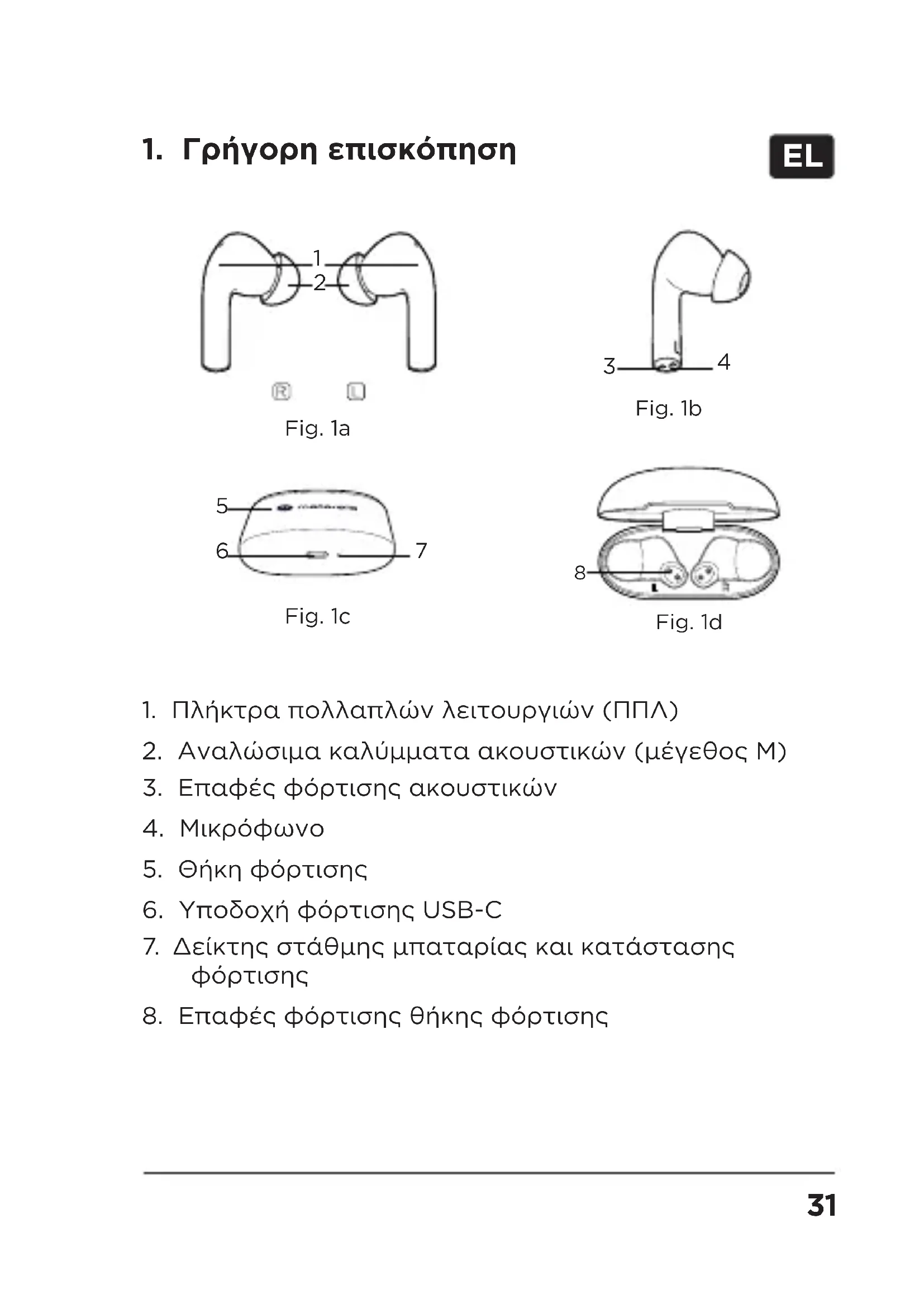 3. Επαφές φόρτισης ακουστικών