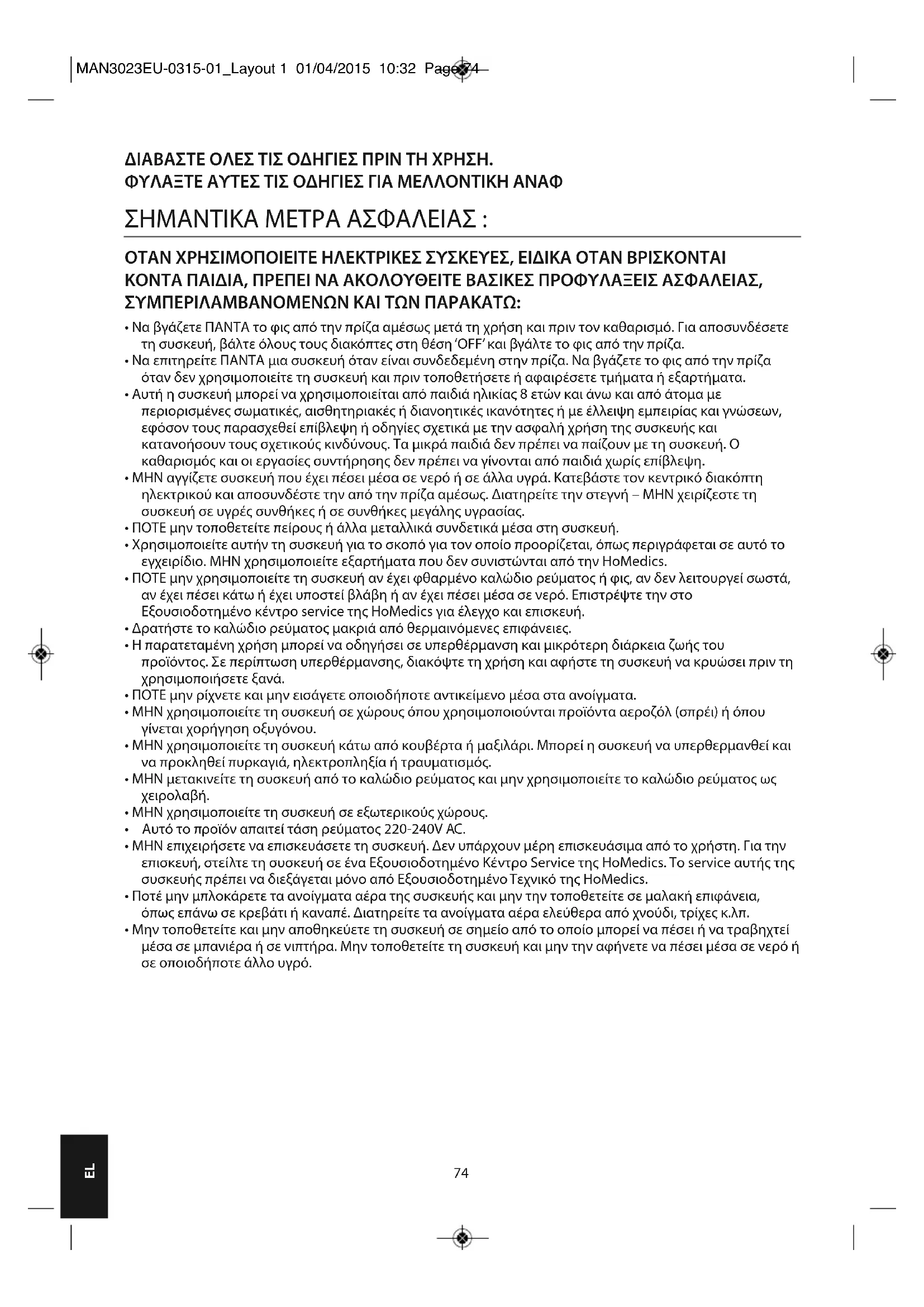 ΕΓΧΕΙΡΊΔΙΟ ΧΡΉΣΗΣ MAN3023A HOMEDICS