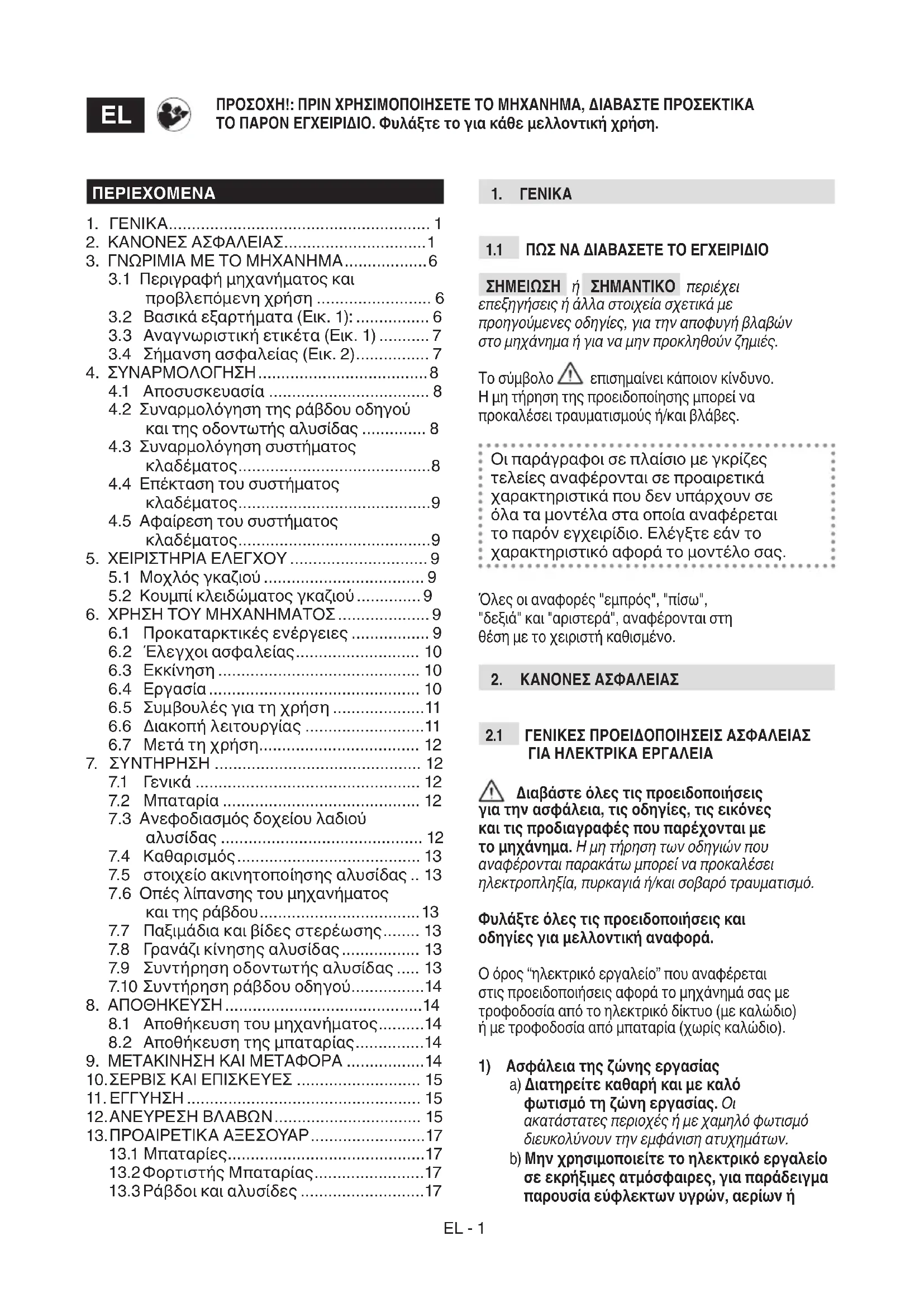 ΠΡΟΣΟΧΗ: πριν χρησιμοποιησετε το μηχανημα, διαβαστε προσεκτικα το παρον εγχειριδιο.