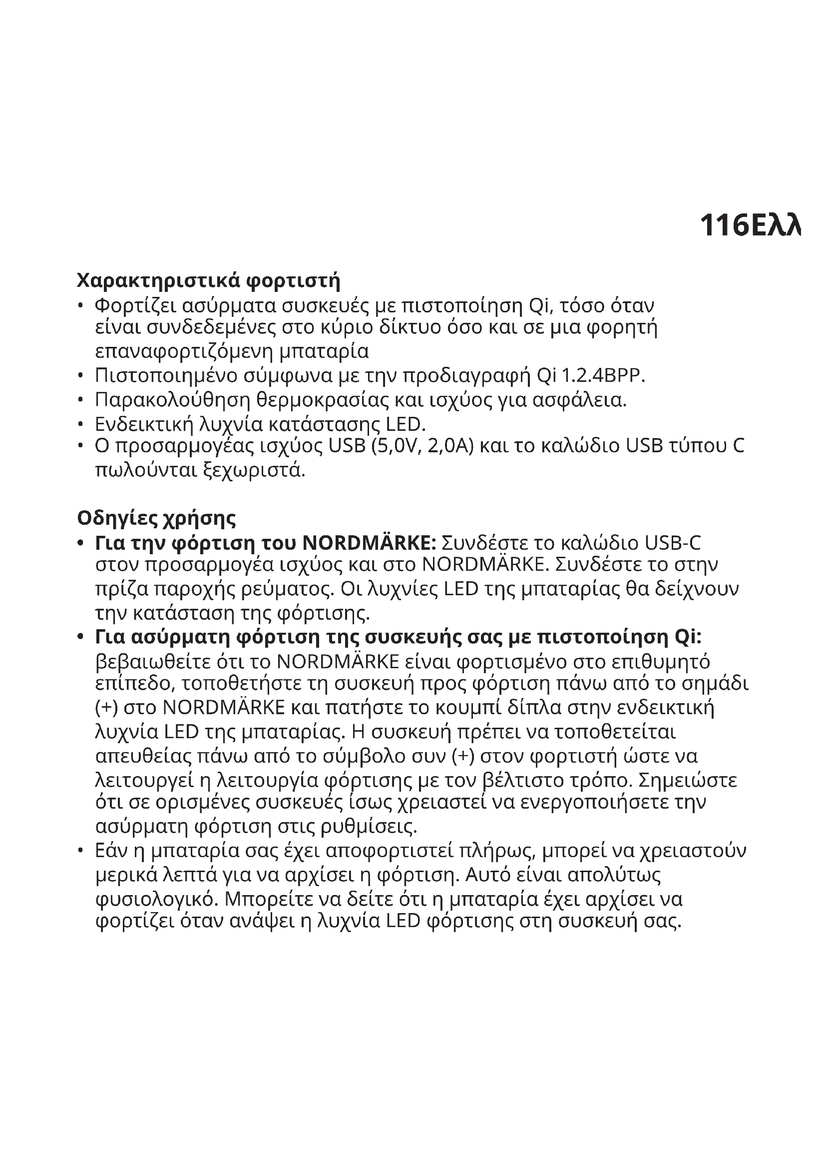 Τεχνικάδεδομένα Τύπος: E2008 NORDMÄRKE Χωρητικότηταμπαταρίας:6500 mAh/24.0 Wh, Li-ion120 Είσοδος: 5,0V DC, 2,0A, 10W USB τύπου C Αποκλειστικάγιαχρήσησεεσωτερικόχώρο Συχνότηταλειτουργίας: 112 - 148 KHz Ισχύςεξόδου:-2 dBμA/m στα 10m Κατασκευαστής:IKEAofSwedenAB Διεύθυνση:Box702SE-34381ÄlmhultSWEDEN Το σύμβολο ‘Qi’ είναι ένα εμπορικό σήμα της Wireless Power Consortium. Το σύμβολο με το διαγραμμένο τροχήλατο κάδο υποδεικνύει ότι το προϊόν χρειάζεται ειδική διαχείριση απόρριψης αποβλήτων. Το προϊόν πρέπει να ανακυκλωθεί σύμφωνα με τους τοπικούς περιβαλλοντικούς κανονισμούς. Διαχωρίζοντας ένα προϊόν με αυτό το σύμβολο, συμβάλλετε στη μείωση του όγκου των αποβλήτων που στέλνονται στα αποτεφρωτήρια ή στους χώρους υγειονομικής ταφής και μειώνετε τις αρνητικές συνέπειες στην υγεία και το περιβάλλον. Για περισσότερες πληροφορίες, απευθυνθείτε σε ένα κατάστημα ΙΚΕΑ.121Русский Особенностизарядногоустройства
