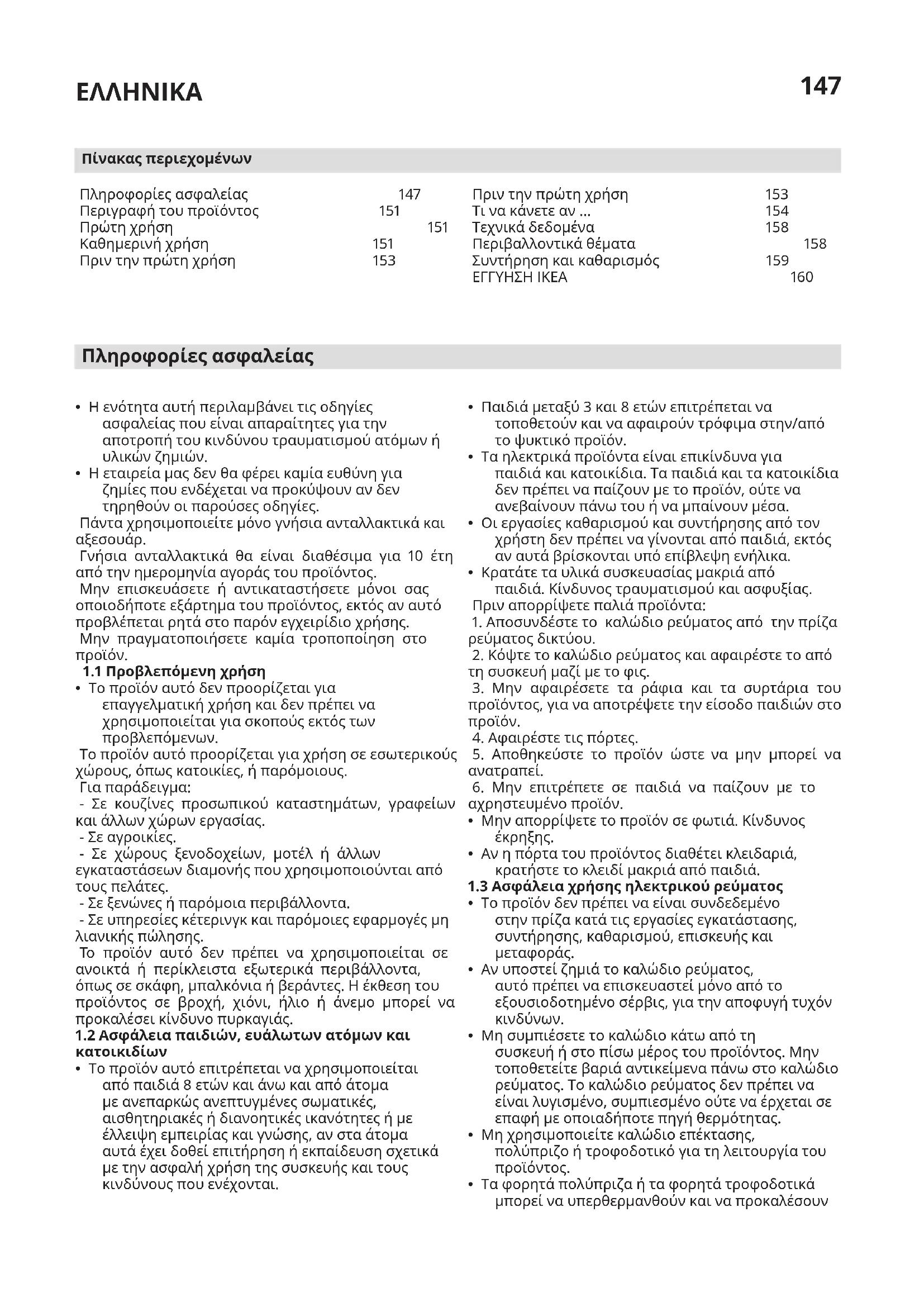 Πληροφορίες ασφαλείας 147 Περιγραφή του προϊόντος 151 Πρώτη χρήση 151 Καθημερινή χρήση 151 Πριν την πρώτη χρήση 153 Πίνακας περιεχομένων Πριν την πρώτη χρήση 153 Τι να κάνετε αν ... 154 Τεχνικά δεδομένα 158 Περιβαλλοντικά θέματα 158 Συντήρηση και καθαρισμός 159