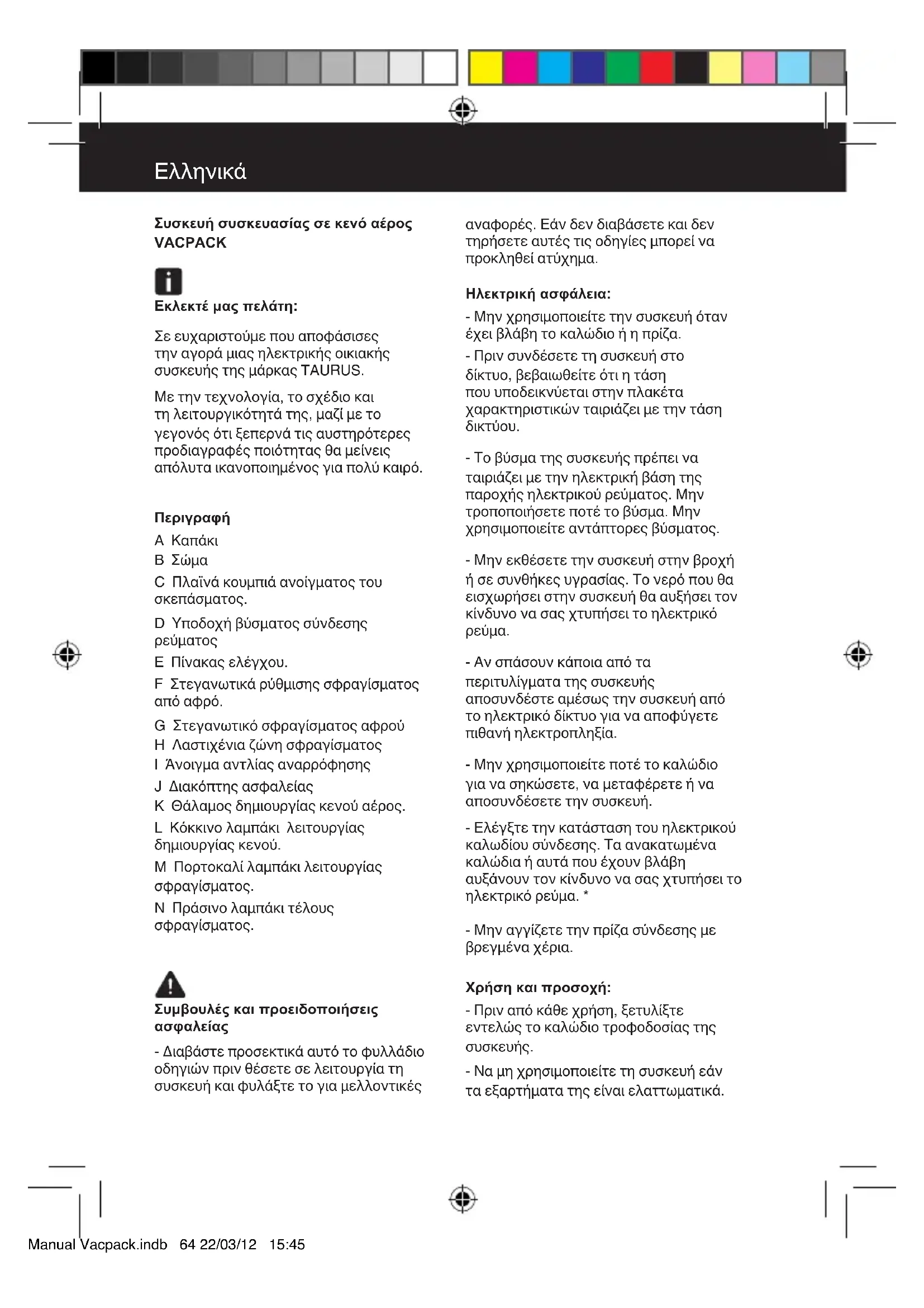 ΕΓΧΕΙΡΊΔΙΟ ΧΡΉΣΗΣ Vacpack TAURUS