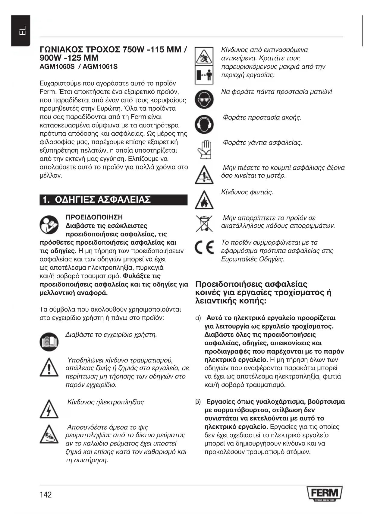 Κατεβάστε τις οδηγίες για το μύλος σε μορφή PDF δωρεάν! Βρείτε το εγχειρίδιό σας AGM1061S - Ferm και πάρτε ξανά την ηλεκτρονική σας συσκευή στα χέρια σας. Σε αυτή τη σελίδα δημοσιεύονται όλα τα έγγραφα που απαιτούνται για τη χρήση της συσκευής σας. AGM1061S της μάρκας Ferm.