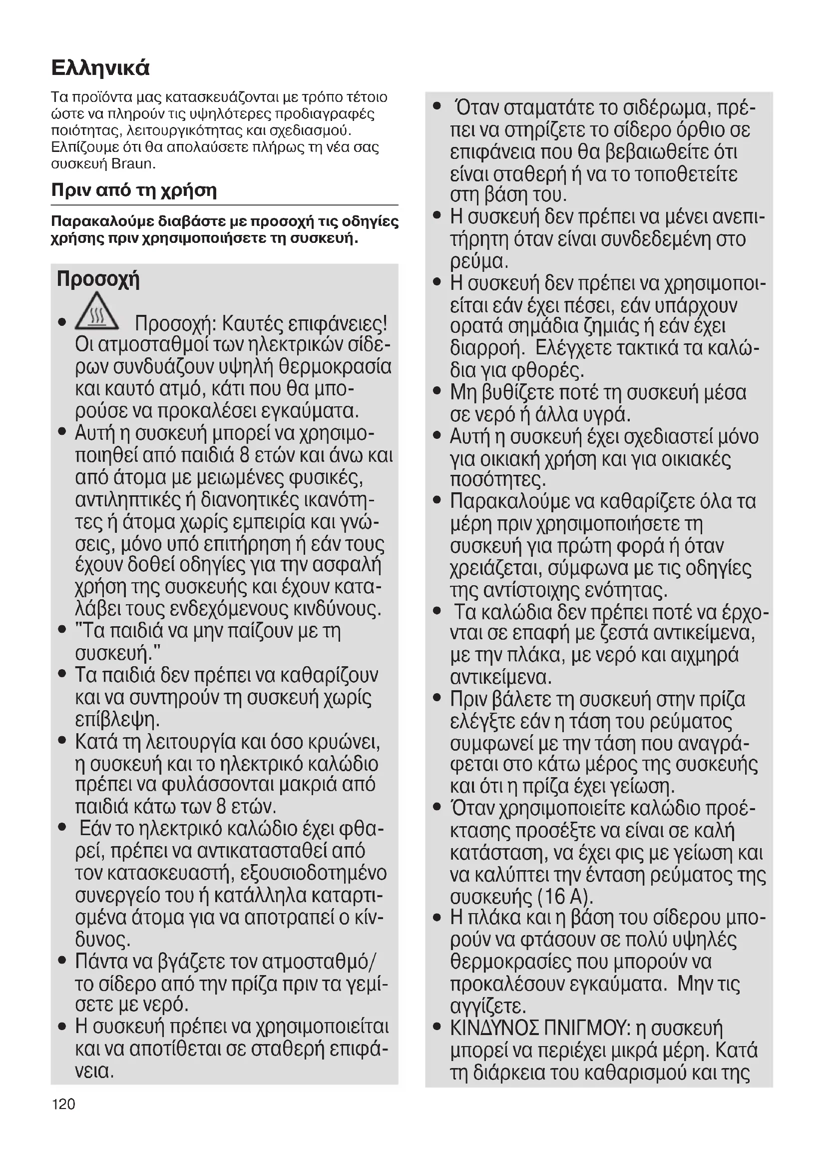 Προσοχή: Καυτές επιφάνειες! Οι ατμοσταθμοί των ηλεκτρικών σίδε- ρων συνδυάζουν υψηλή θερμοκρασία και καυτό ατμό, κάτι που θα μπο- ρούσε να προκαλέσει εγκαύματα.