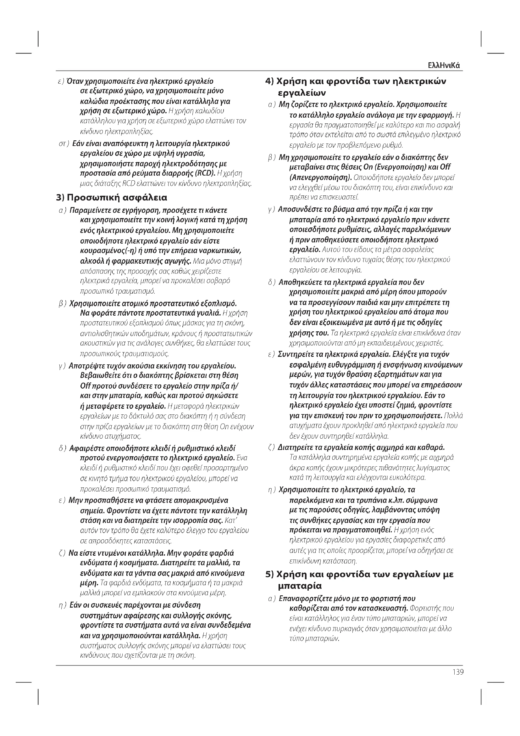 4) Χρήση και φροντίδα των ηλεκτρικών εργαλείων