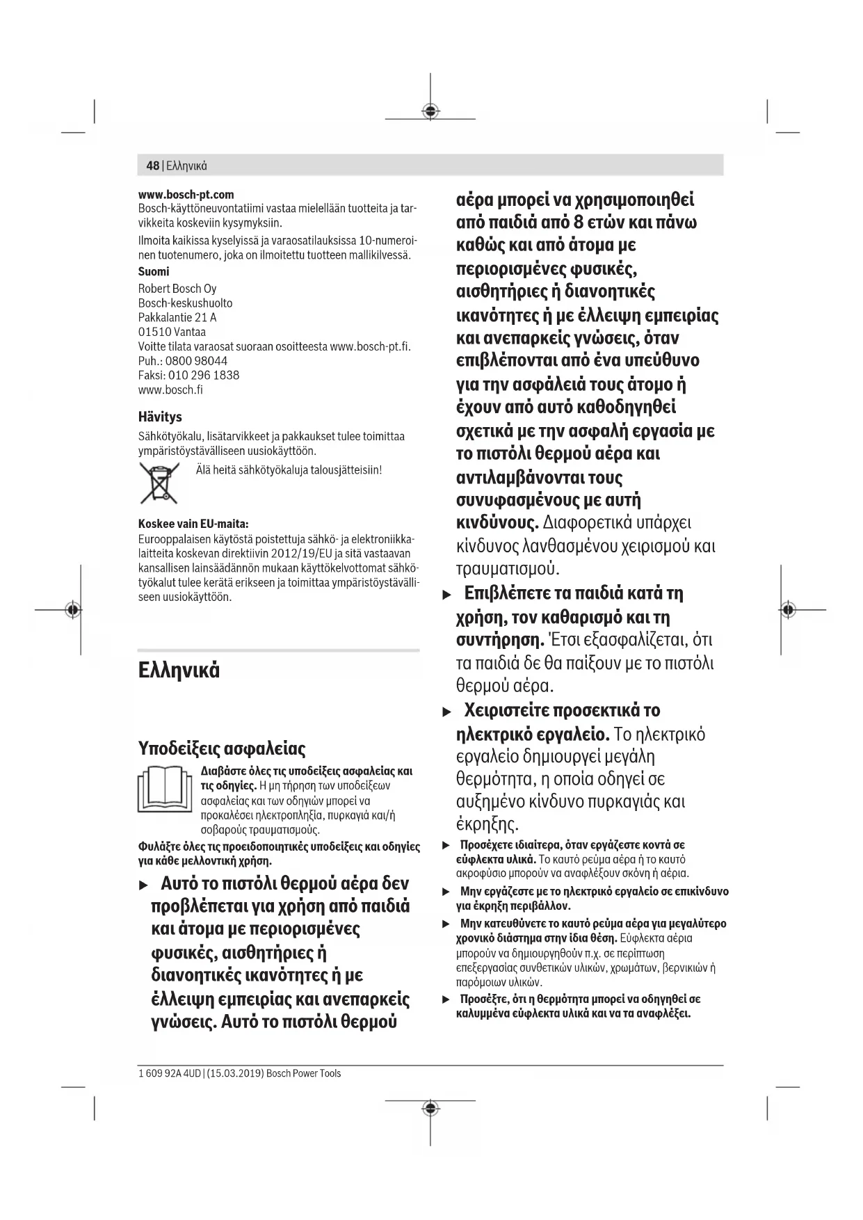 Ta nλeκτρικα εργαλεί, Ta εξαρτηματα καιοι συσκεύαδες πρεπενανακukλωνονται με τρόπο φιλικό προς Ππεριβαλαν.