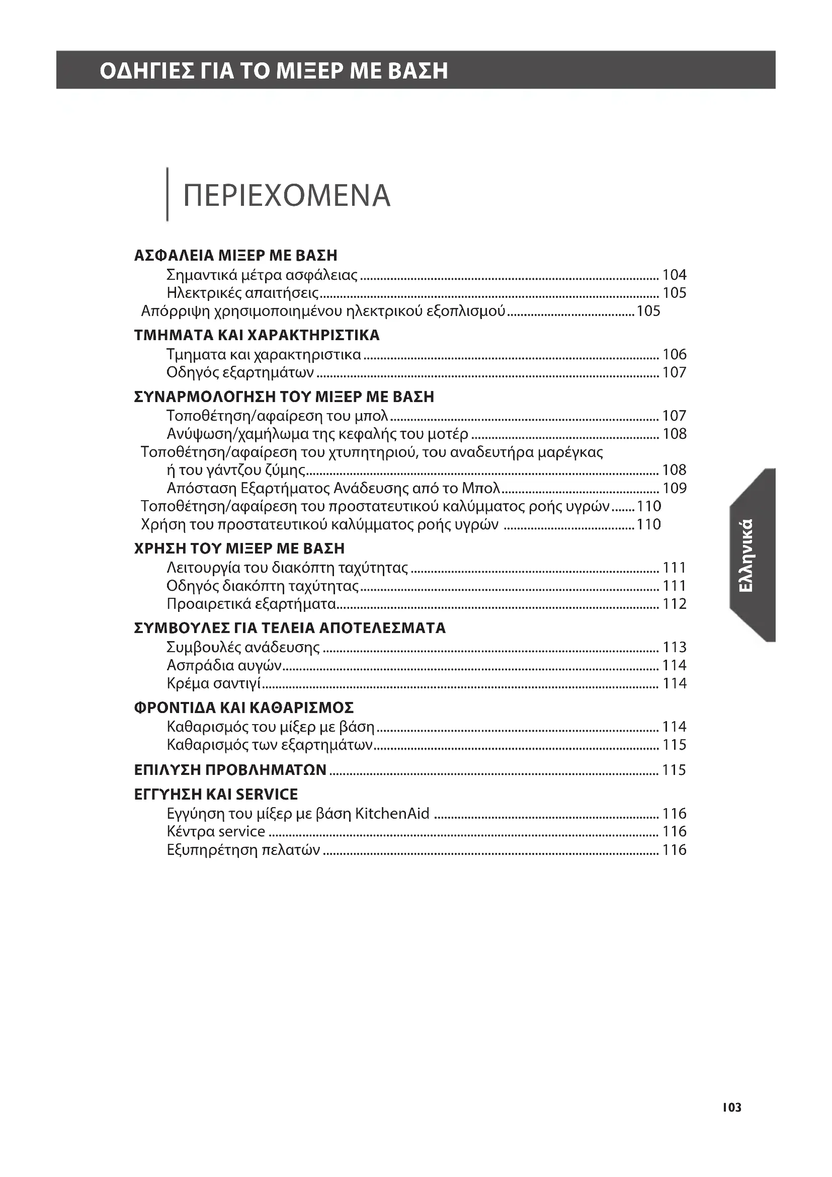 - εγγυηςη καί SERVICE Εγγύηση του ίξερ ε βάση KitchenAid p. 116