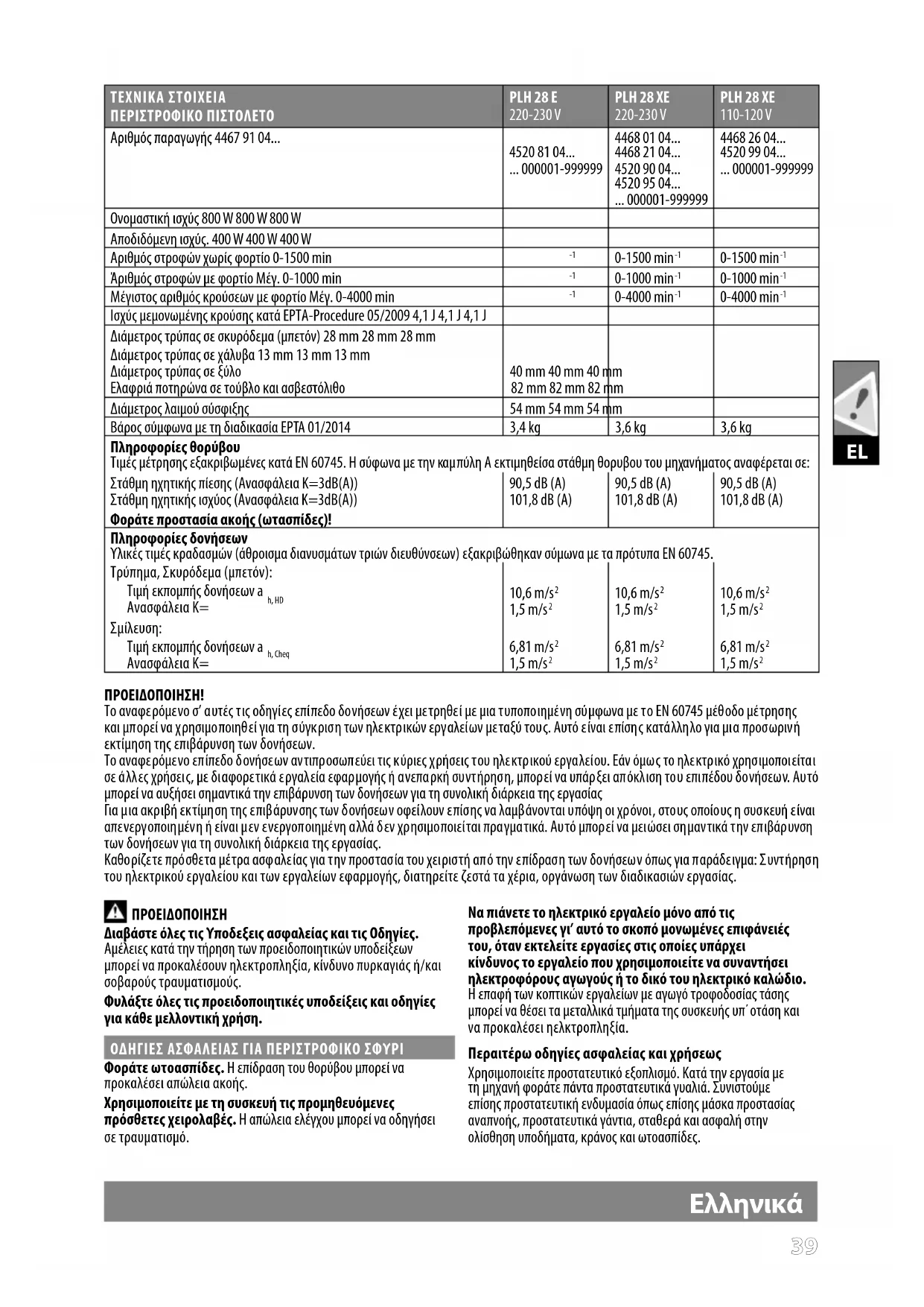 ΤΕΧΝΙΚΑ ΣΤΟΙΧΕΙΑ ΠΕΡΙΣΤΡΟΦΙΚΟ ΠΙΣΤΟΛΕΤΟ PLH 28 E 220-230 V PLH 28 XE 220-230 V PLH 28 XE 110-120 V Αριθμός παραγωγής 4467 91 04...
