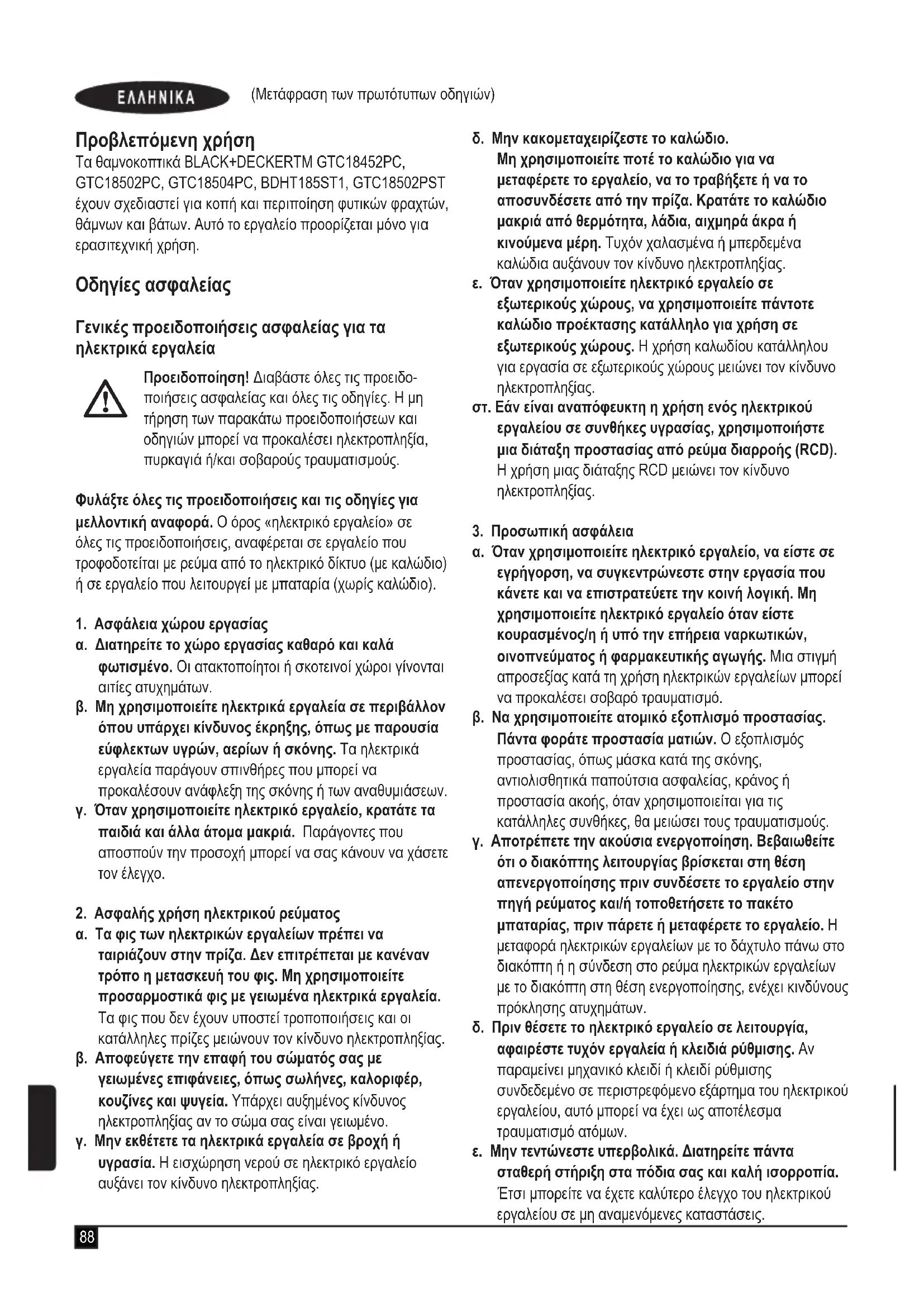 Βρείτε δωρεάν το εγχειρίδιο της συσκευής GTC18502PC BLACK & DECKER σε μορφή PDF.