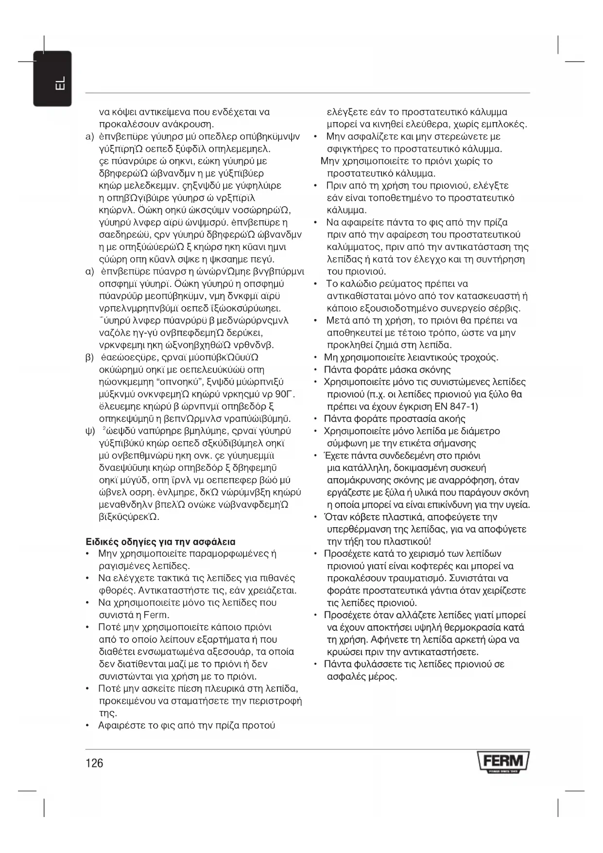 - ÛÊ·Ï‹ ·fiÛÙ·ÛË ·fi ÙÔ ÚÈfiÓÈ. Φοράτε προστασία ματιών Φοράτε προστασία ακοής ºÔÚ¤Û·Ù ̛· Ì¿Ûη ÚÔÛÙ·Û›·˜ ·fi ÙËÓ ÛÎfiÓË. ¶ÚÔÛÔ¯‹