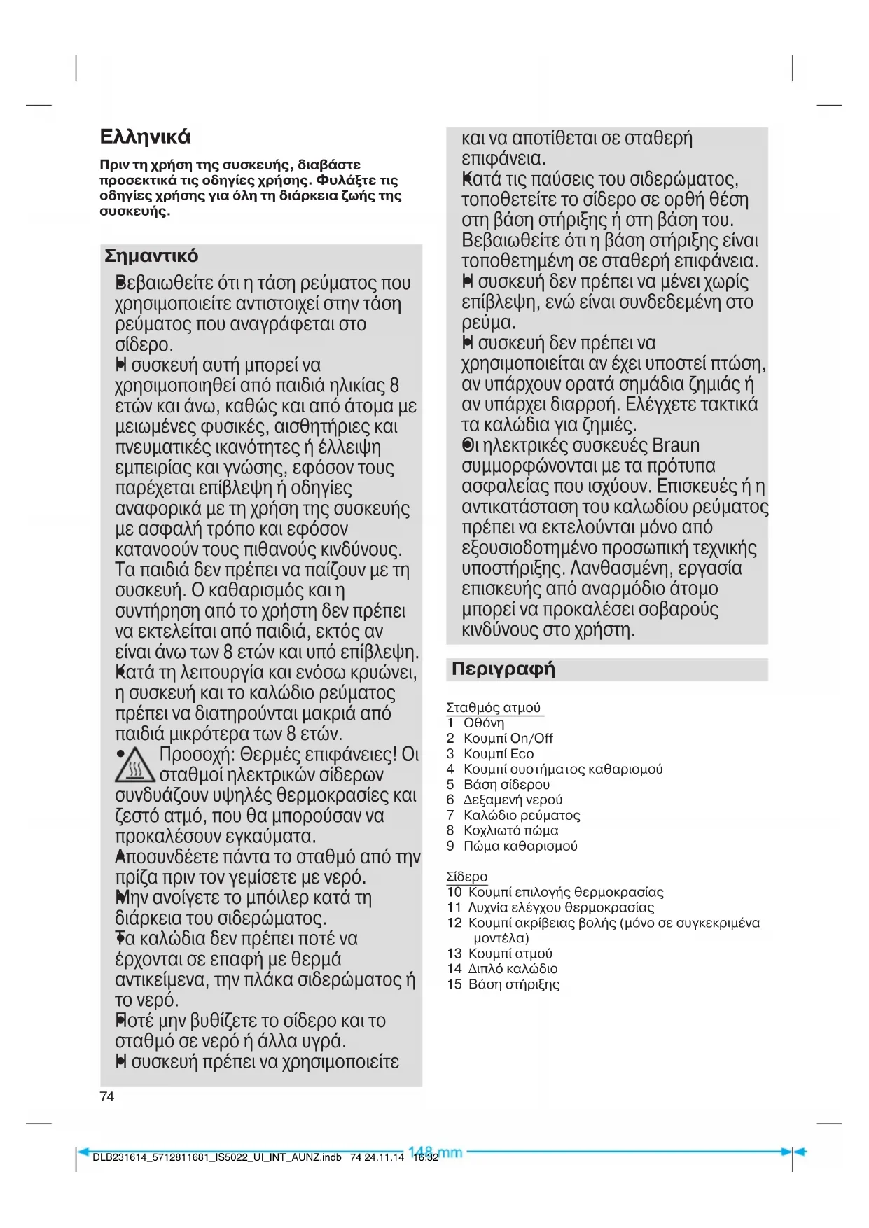 DLB231614_5712811681_IS5022_UI_INT_AUNZ.indb 73 24.11.14 16:32Ελληνικά Πριν τη χρήση της συσκευής, διαβάστε προσεκτικά τις οδηγίες χρήσης. Φυλάξτε τις οδηγίες χρήσης για όλη τη διάρκεια ζωής της