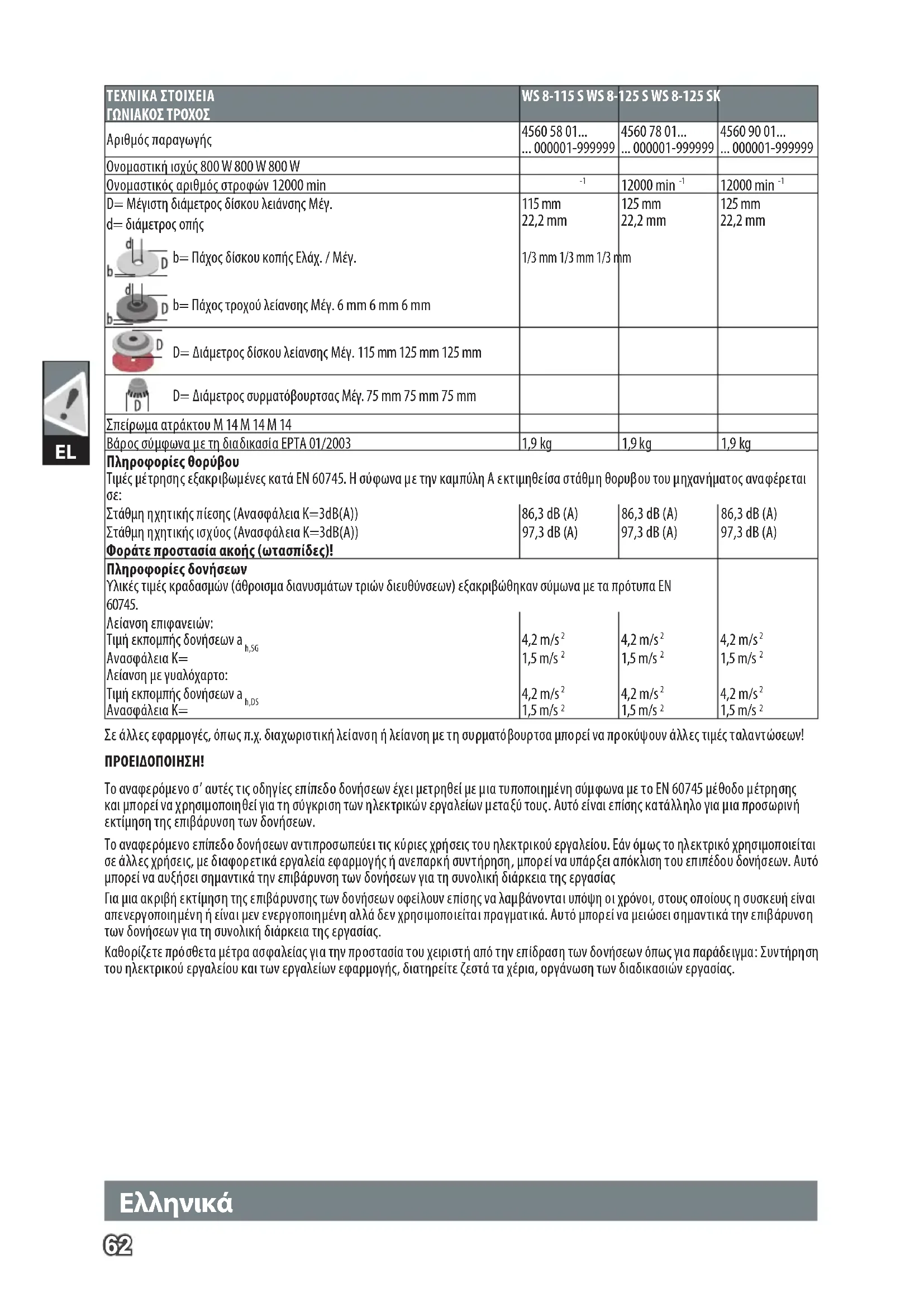 ΤΕΧΝΙΚΑ ΣΤΟΙΧΕΙΑ ΓΩΝΙΑΚΟΣ ΤΡΟΧΟΣ WS 8-115 S WS 8-125 S WS 8-125 SK Αριθμός παραγωγής