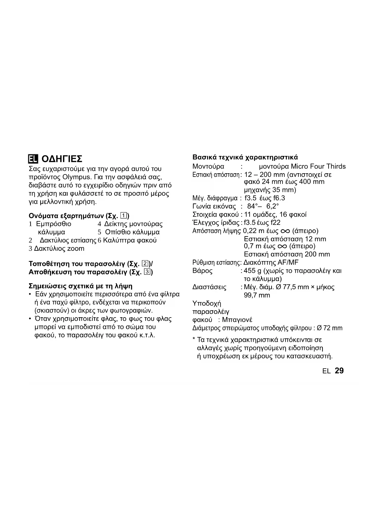 ΕΓΧΕΙΡΊΔΙΟ ΧΡΉΣΗΣ M.Zuiko Digital ED 12200mm f3.56.3 OLYMPUS