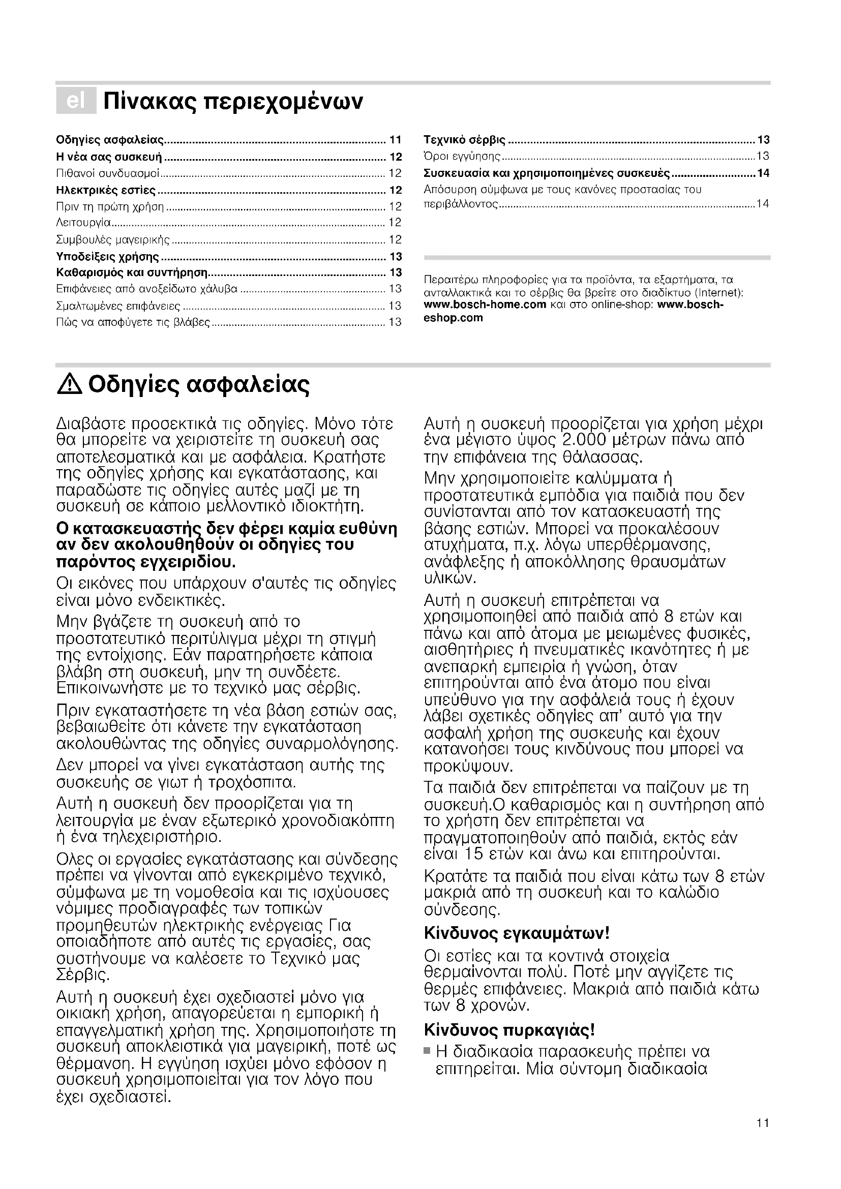 Αυτή η συσκευή έχει σχεδιαστεί μόνο για οικιακή χρήση, απαγορεύεται η εμπορική ή επαγγελματική χρήση της. Χρησιμοποιήστε τη συσκευή αποκλειστικά για μαγειρική, ποτέ ως θέρμανση. Η εγγύηση ισχύει μόνο εφόσον η συσκευή χρησιμοποιείται για τον λόγο που έχει σχεδιαστεί. Αυτή η συσκευή προορίζεται για χρήση μέχρι ένα μέγιστο ύψος 2.000 μέτρων πάνω από την επιφάνεια της θάλασσας. Μην χρησιμοποιείτε καλύμματα ή προστατευτικά εμπόδια για παιδιά που δεν συνίστανται από τον κατασκευαστή της βάσης εστιών. Μπορεί να προκαλέσουν ατυχήματα, π.χ. λόγω υπερθέρμανσης, ανάφλεξης ή αποκόλλησης θραυσμάτων