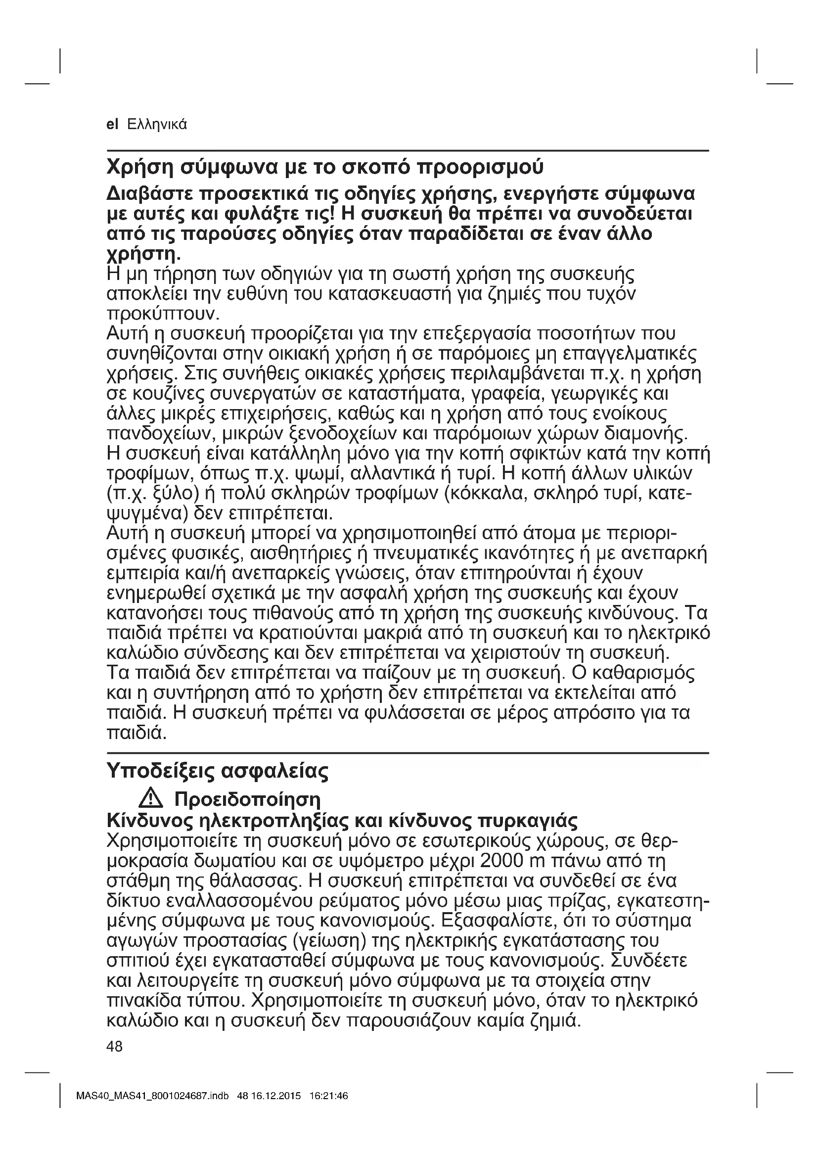 - Χρήσησύμφωναμετοσκοπόπροορισμού48 Υποδείξειςασφαλείας p. 48