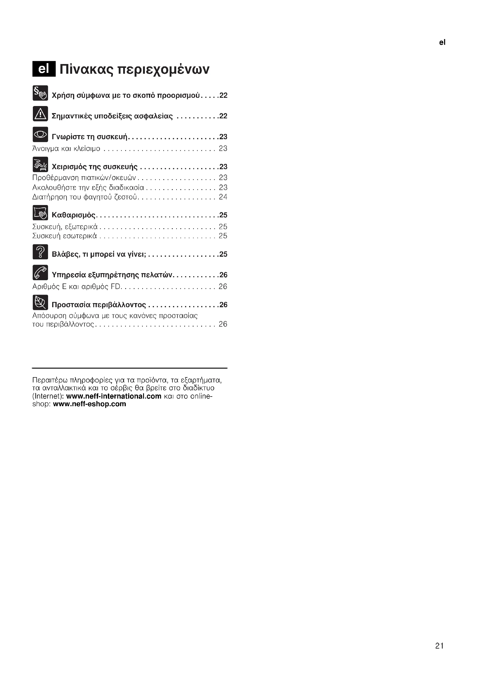 Iepaipew PAnpoopiec yia Ta TpOioVta, ta EApTmuata, taavaaakikacai to oepicg aBpeite oTo diaiktuo (Internet): www.neff-international.com kai oTo online- shop: www.neff-eshop.com