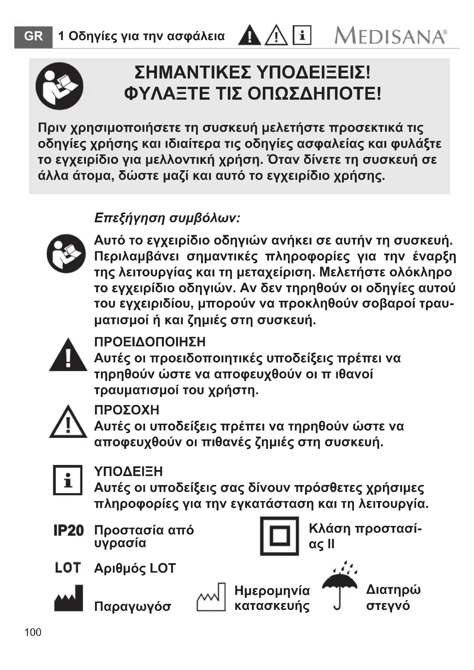 - Iα ta προίντα MEDISANA παρεχειαι εγγύηση τριών ετών από την ηερομηνία αγοράς. Σε περίπτωση εγγύπικής αξιωσός η μερομηνία αγοράς θα πρέπεινα απόδεικυειται μέσω απόδειξής η τιμολούγίου αγοράς.