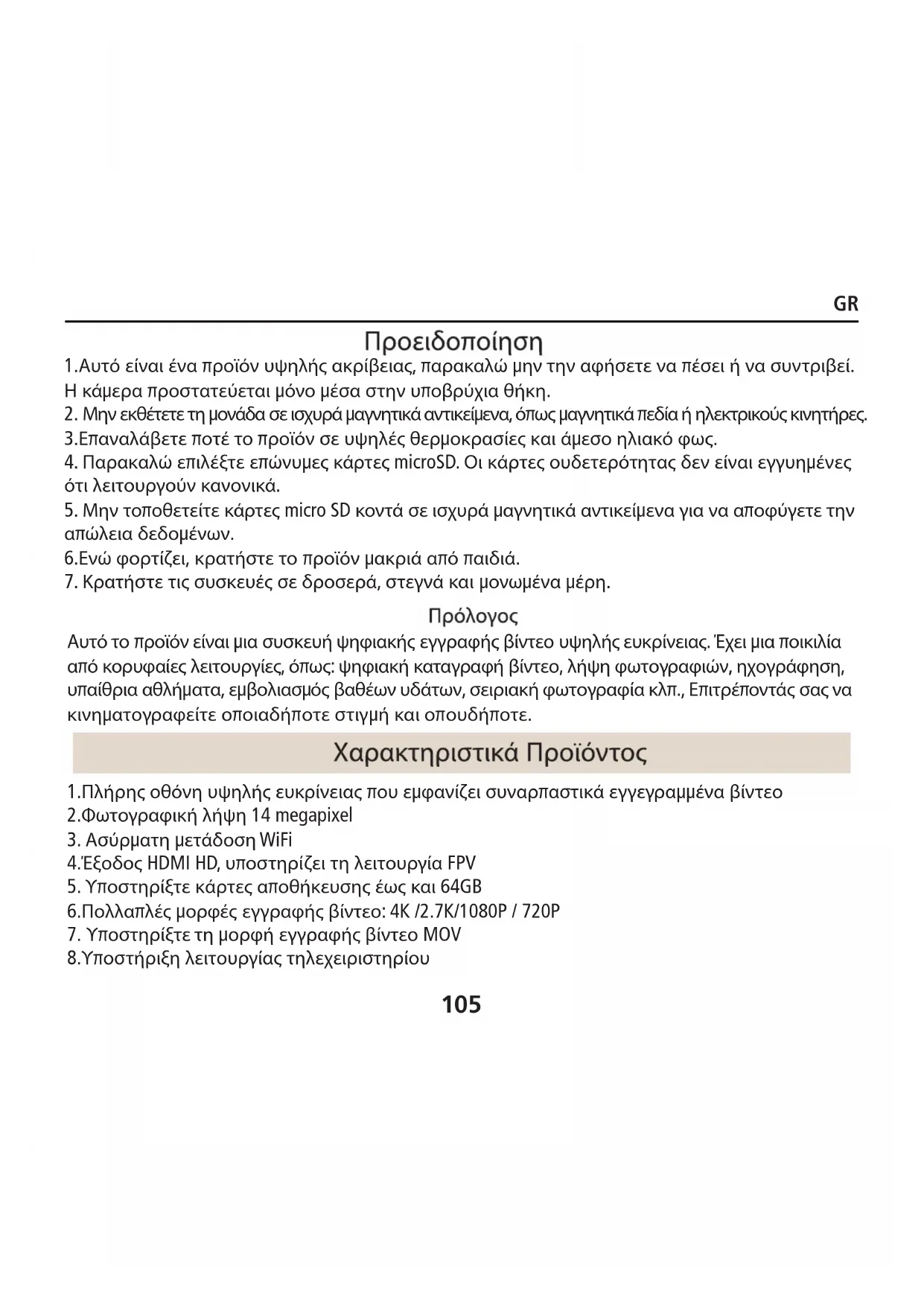 τη μορφή εγγραφής βίντεο MOV 8.Υποστήριξη λειτουργίας τηλεχειριστηρίου Αυτό το προϊόν είναι μια συσκευή ψηφιακής εγγ ρ αφ ής βίντεο υψηλής ευκρίνειας. Έχει μια ποικιλία από κορυφαίες λειτου ργίες, όπως: ψηφιακή καταγραφή βίντεο, λήψη φωτ ο γραφι ών , ηχ ογ ράφηση, υπαίθρια αθλήματ α, εμβολιασμός βαθέων υδάτων, σειριακή φωτο γραφί α κλπ., Επιτ ρέποντάς σας να κινηματογραφείτε οπ οιαδήποτε στιγμή και οπουδήποτε.GR