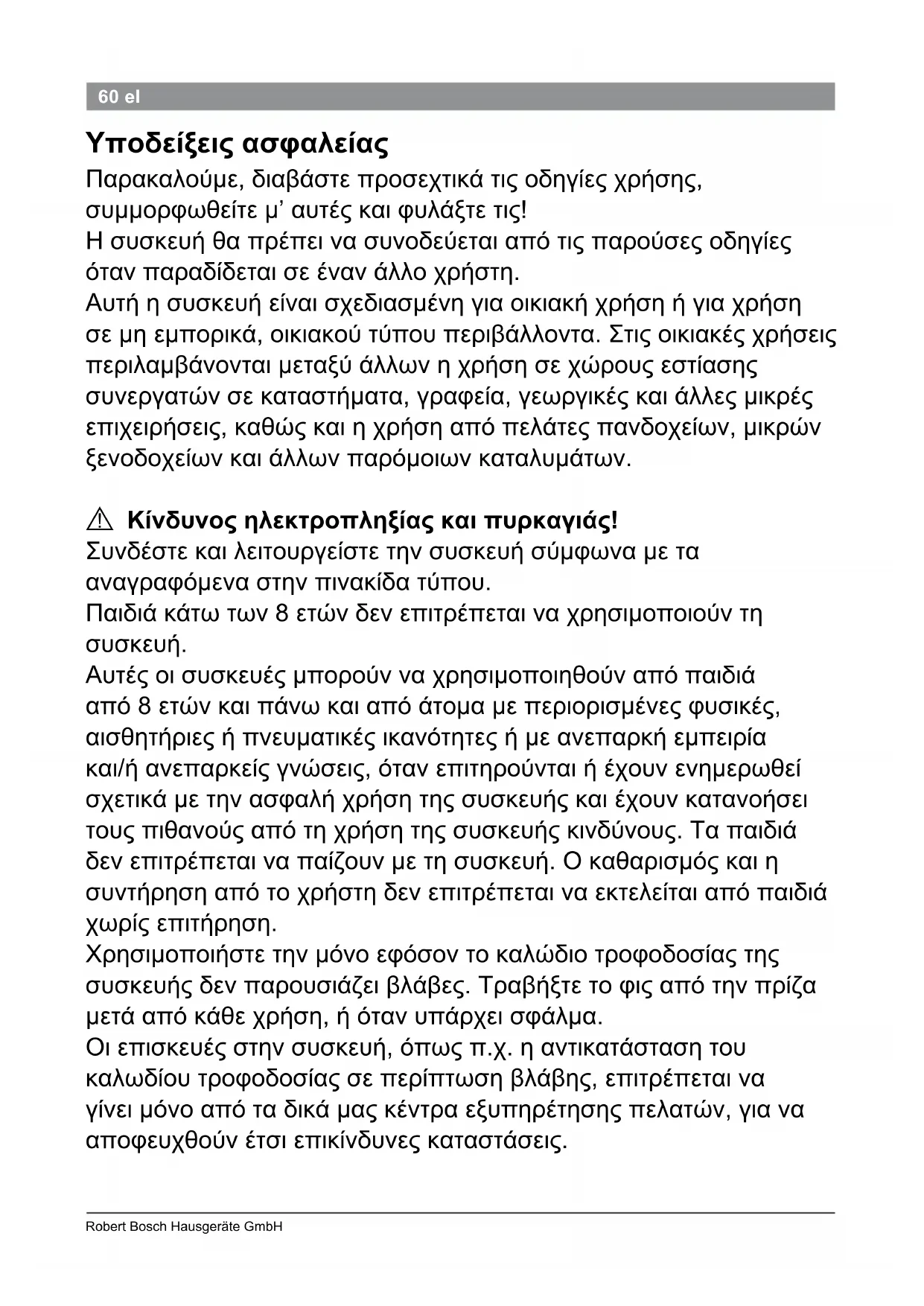ώσεις και οι κίνδυνοι που σχετίζονται με τη μεταφορά του προϊόντος προς επισκευή στον μεταπωλητή ή προς το Εξουσιοδοτη- μένο Σέρβις της BSH Οικιακές Συσκευές Α.Β.Ε.66 Robert Bosch Hausgeräte GmbH 66 el