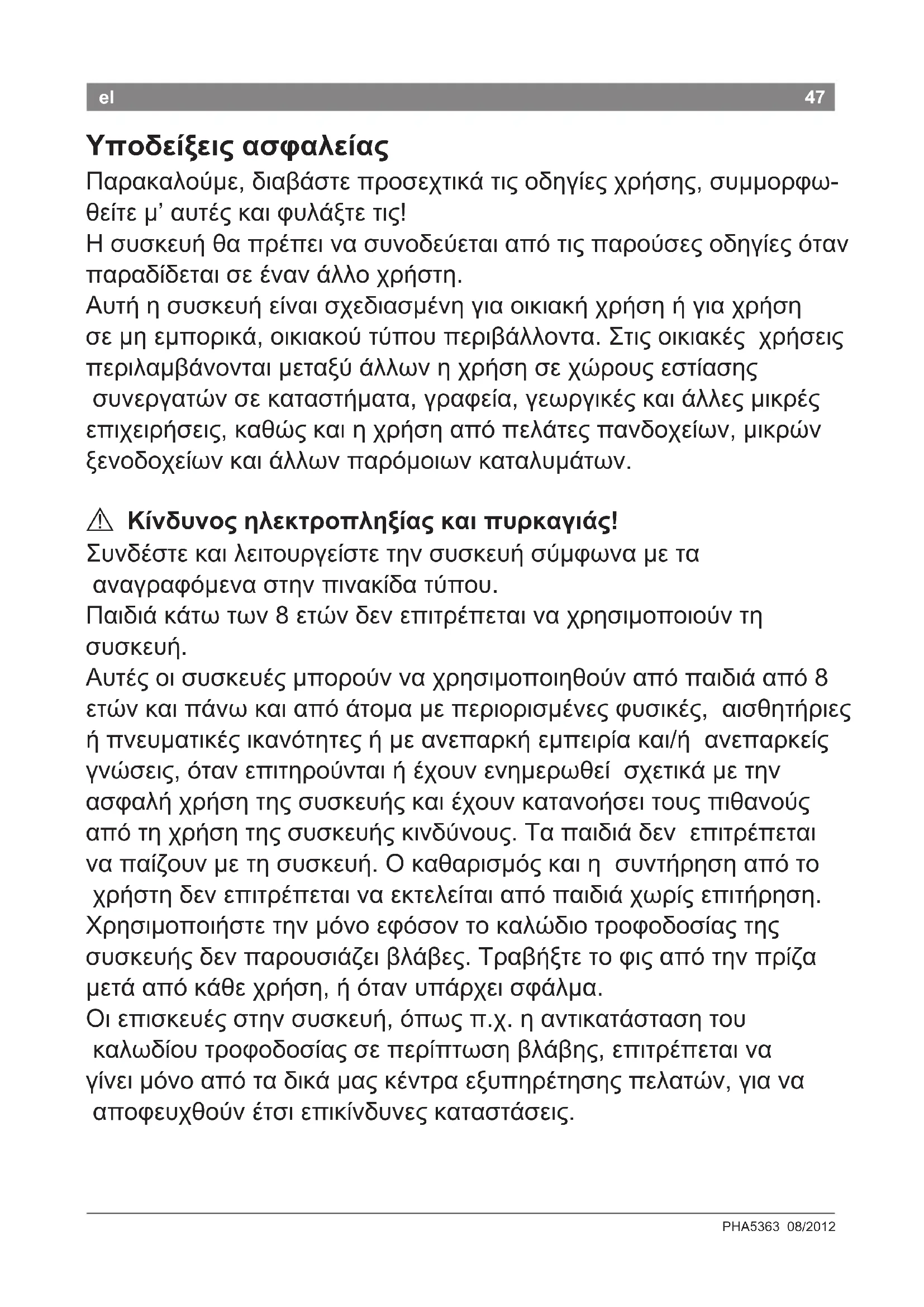 Θανάσιμος κίνδυνος! Μηφέρνετεποτέτηνσυσκευήσεεπαφήμετονερό.Κίνδυνος υπάρχειακόμακαιότανησυσκευήείναιαπενεργοποιημένηκαιγια τολόγοαυτό,μετάαπόκάθεχρήσηήδιακοπήστηδιάρκειατης χρήσης,τραβήξτετοφιςαπότηνπρίζα. Επιπρόσθετηασφάλειαπροσφέρειηπροσθήκηπροστατευτικού μερελαίδιαφυγήςμέχρι30mAστηνηλεκτρικήεγκατάστασητου σπιτιού.Ζητήστεσυμβουλήαπόεγκαταστάτηηλεκτρολόγο.