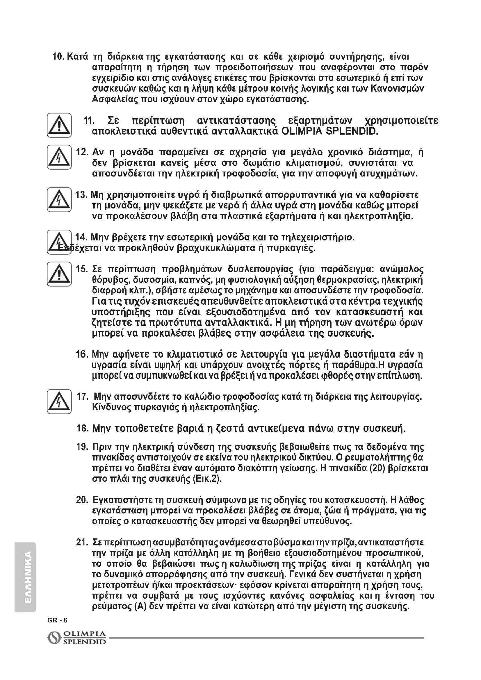 - Οεξοπλισμόςτροφοδοτείταιαποκλειστικάμέσωενόςυποδοχήσυμβατήμετοφιςπουπαρέχεται. ÐñïåéäïÐïSSçÓç Οποιαδήποτεαντικατάστασητουκαλωδίουτροφοδοσίαςπρέπειναγίνεταιμόνο απόOlimpiaSplendidτεχνικήυπηρεσίαείτεαπόπροσωπικόμεπαρόμοιαπρο-