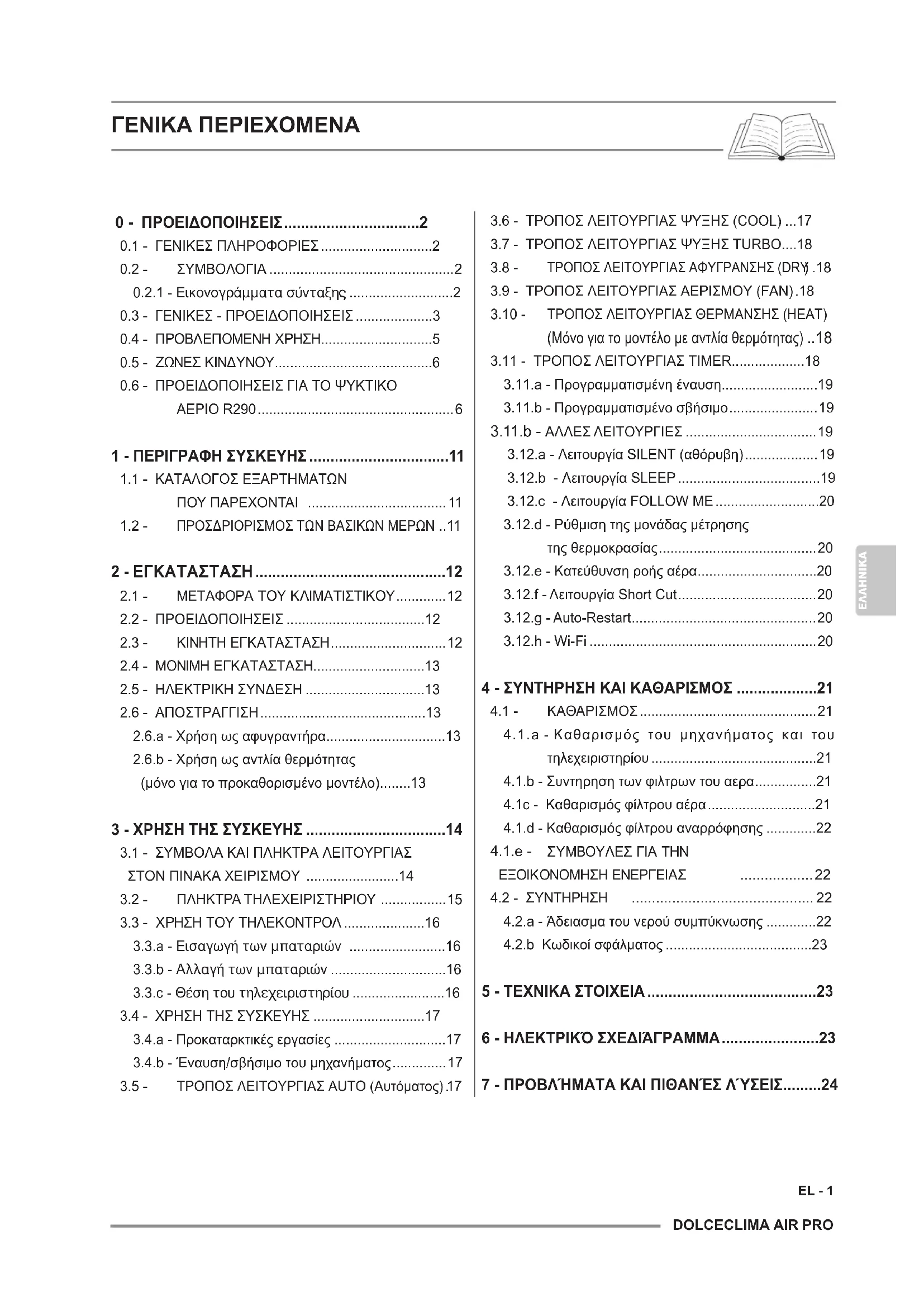 Οι απεικονίσεις έχουν ομαδοποιηθεί στις αρχικές σελίδες του εγχειριδίουDOLCECLIMA AIR PRO EL - 3
