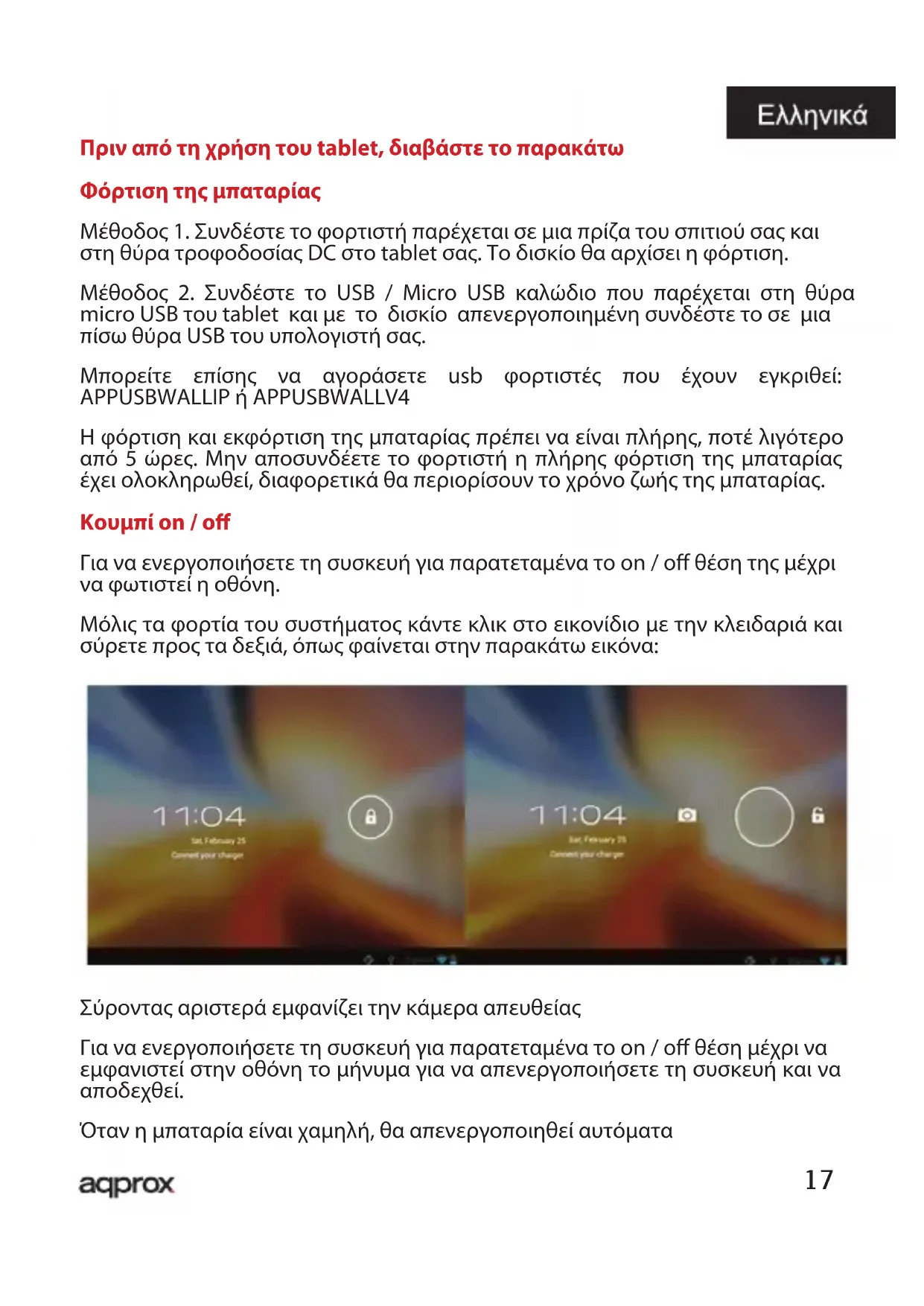 Mπoείτε επίοης va ayopáσετε usb φορτισές που ἐχουν εγκριθεί: APPUSBWALLIP n APPUSBWALLV4