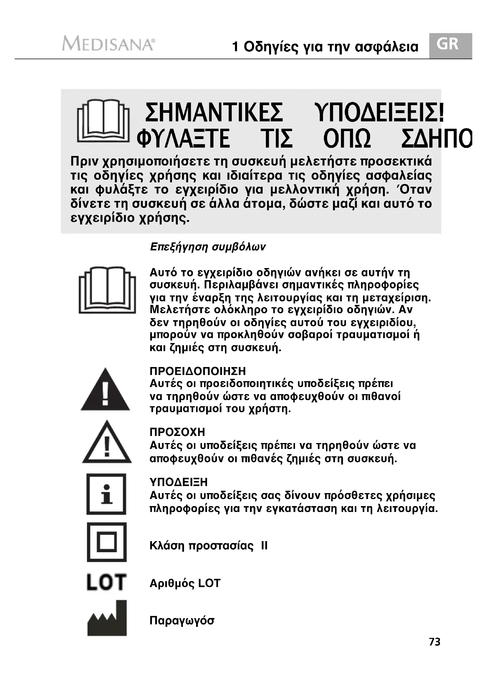 - Για τα προϊόντα MEDISANA παρέχεται εγγύηση τριών ετών από την ημερομηνία αγοράς. Σε περίπτωση εγγυητικής αξίωσης η ημερομηνία αγοράς θα πρέπει να αποδεικνύεται μέσω απόδειξης ή τιμολογίου αγοράς.