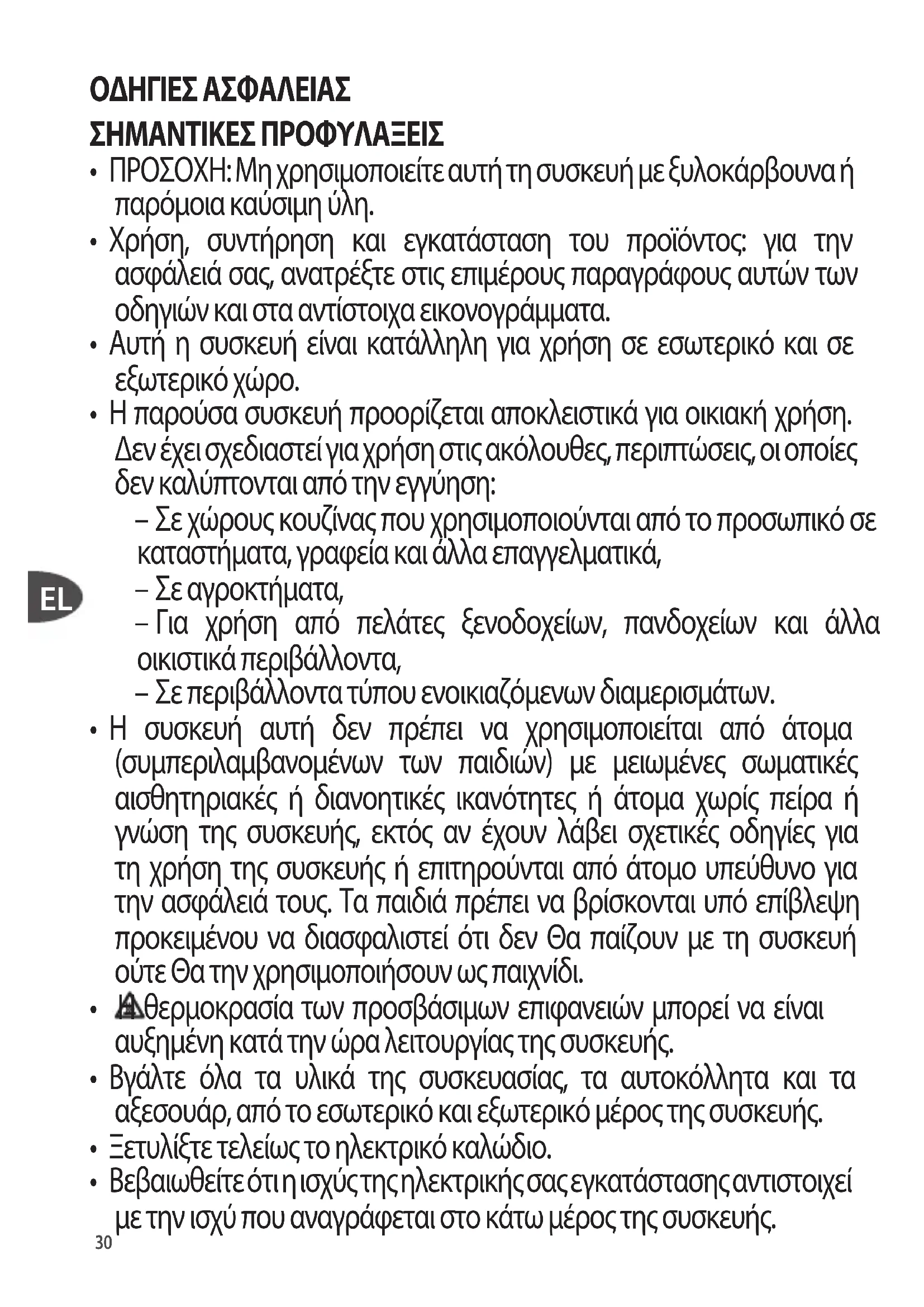 - ΠΡΟΣΟΧΗ: Μη χρησιμοποιείτε αυτή τη συσκευή με ξυλοκάρβουνα ή παρόμοια καύσιμη ύλη.
