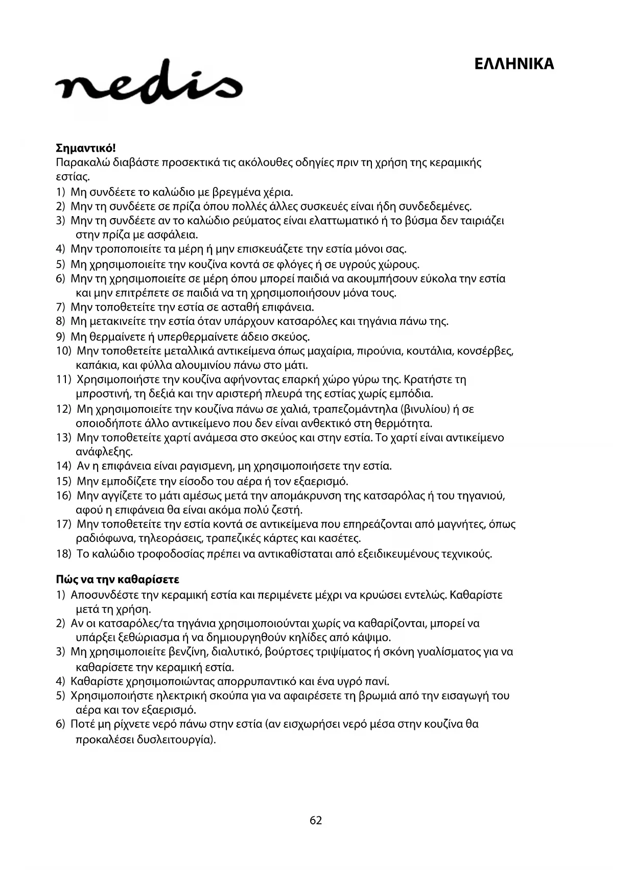 Παρακαλώ διαβάστε προσεκτικά τις ακόλουθες οδηγίες πριν τη χρήση της κεραμικής