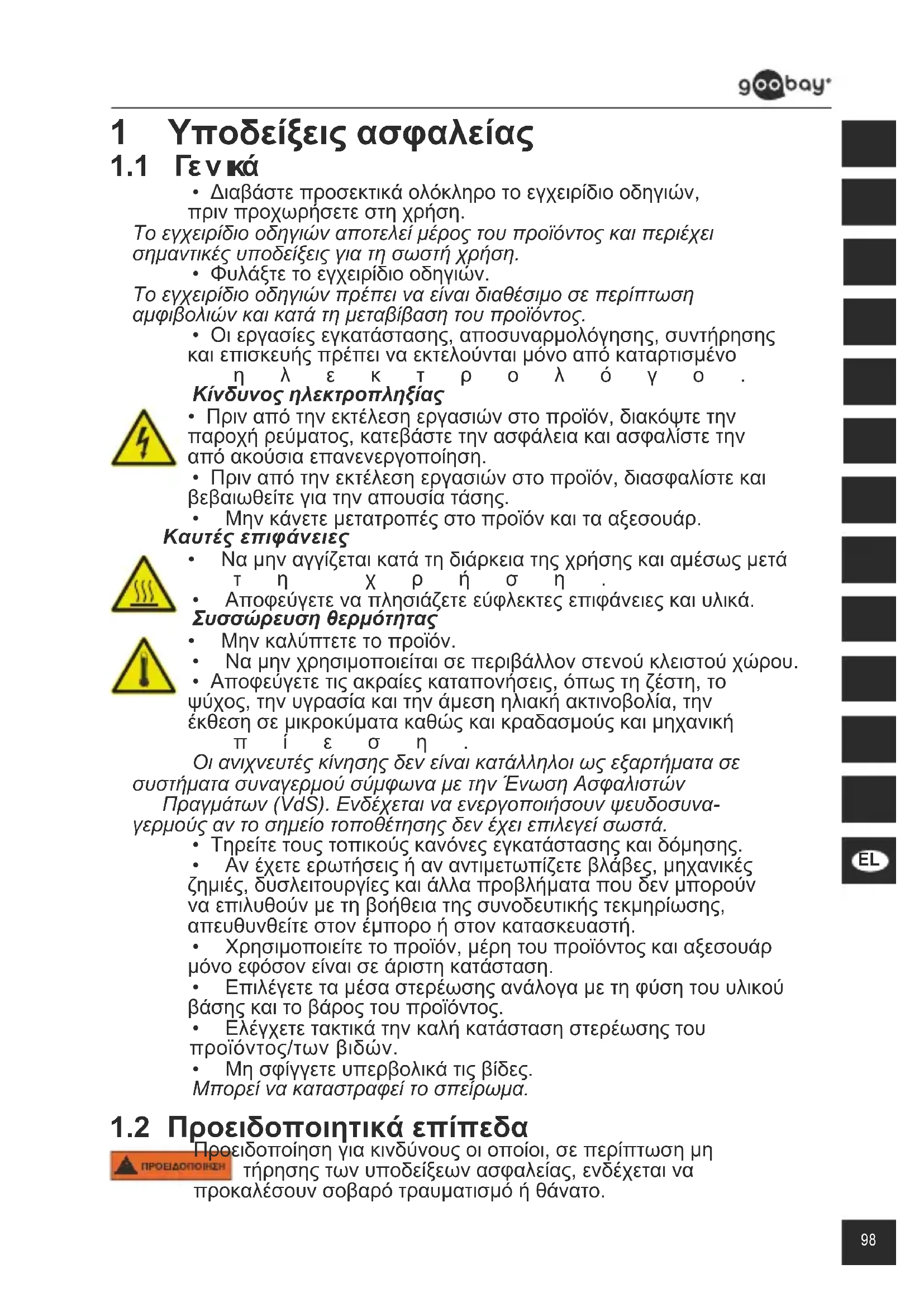 ΟΔΗΓΊΕΣ ΛΕΊΤΟΥΡΓΊΑΣ περιεχόμενα 1 Υποδείξειςασφαλείας ................................................................. 98
