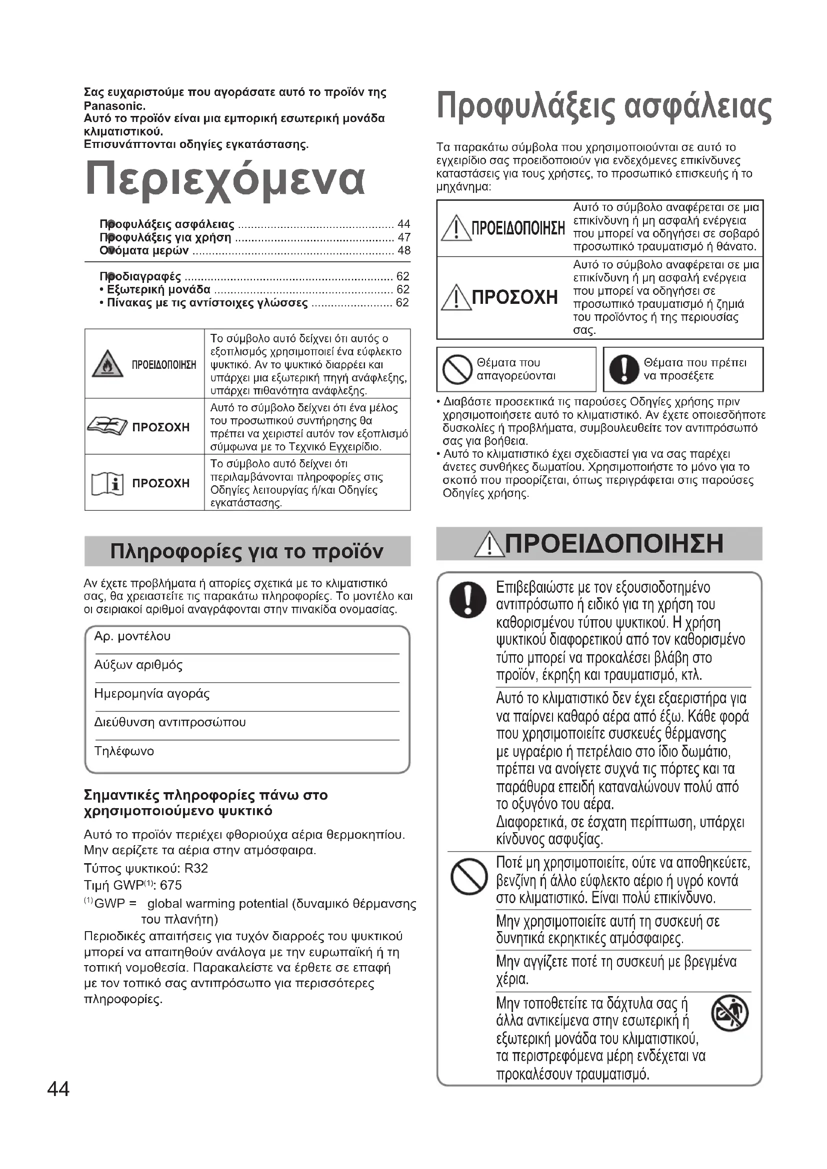 | ΠPOΕΙΟΙΟΗΗ | To σύμβολo auto δείχνει οτι autoς o εξοπλιαμός χροσιμοτοίει ευλέφακτο ψικτιό. Av to ψικτιό διαρρείαι και ιτάρχει μία εξωτερίκη πήγι ανάφλεξης, ιτάρχει πιθανότητα ανάφλεξης. |