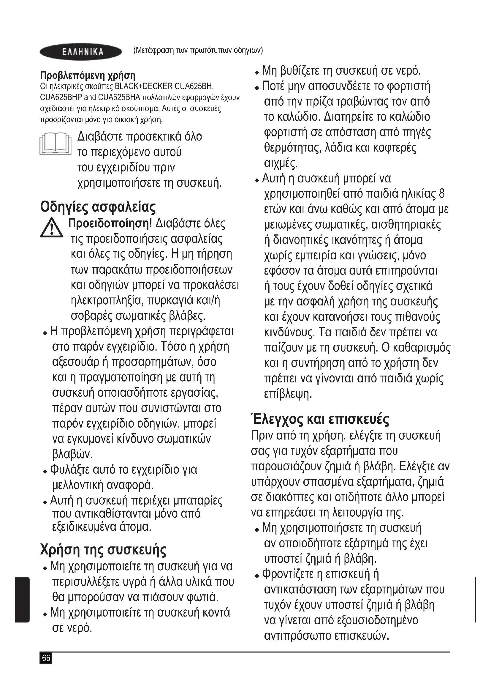 ΕΓΧΕΙΡΊΔΙΟ ΧΡΉΣΗΣ CUA625BH BLACK & DECKER