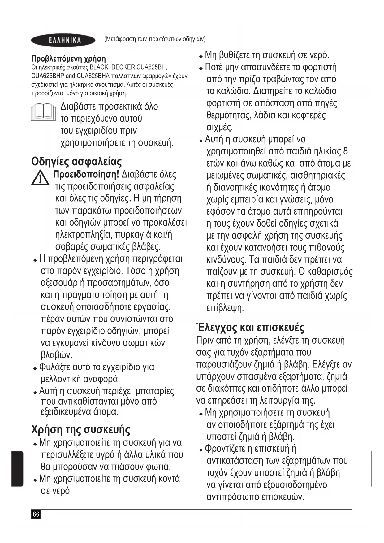 ΕΓΧΕΙΡΊΔΙΟ ΧΡΉΣΗΣ CUA625BHP BLACK & DECKER
