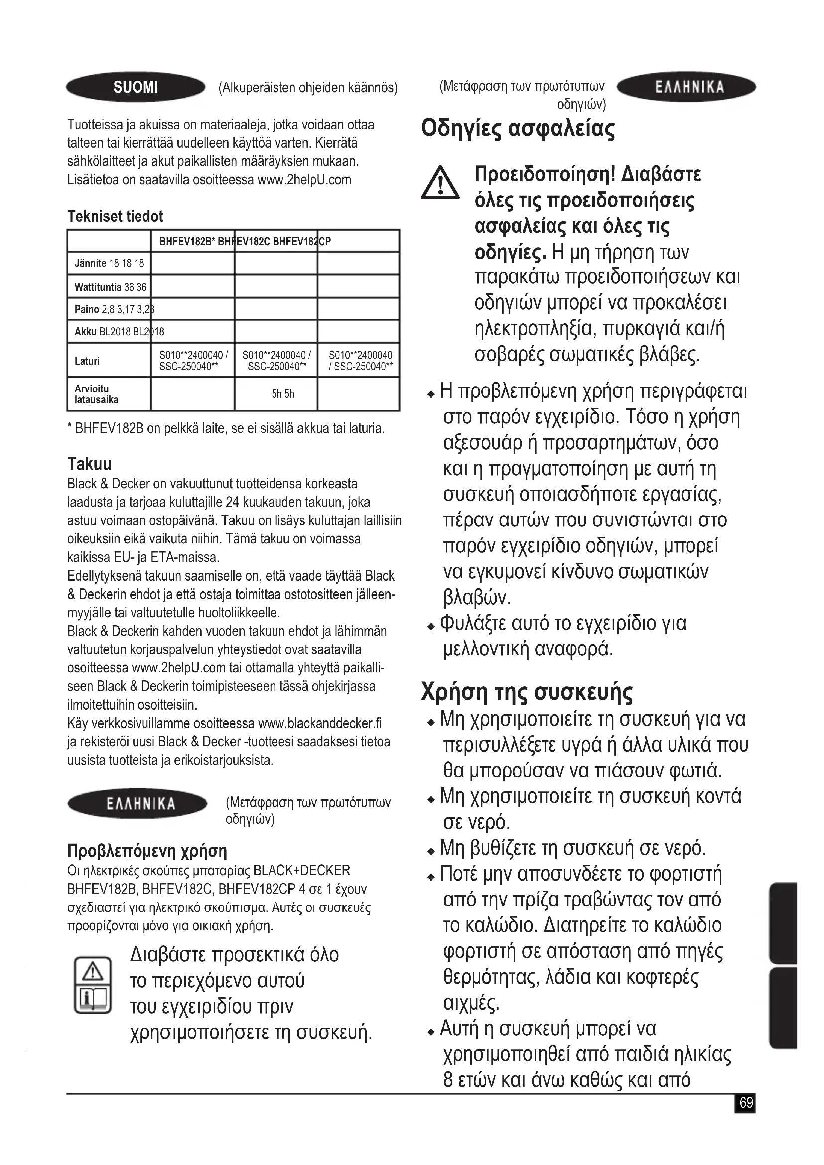 ΕΓΧΕΙΡΊΔΙΟ ΧΡΉΣΗΣ BHFEV182B BLACK & DECKER