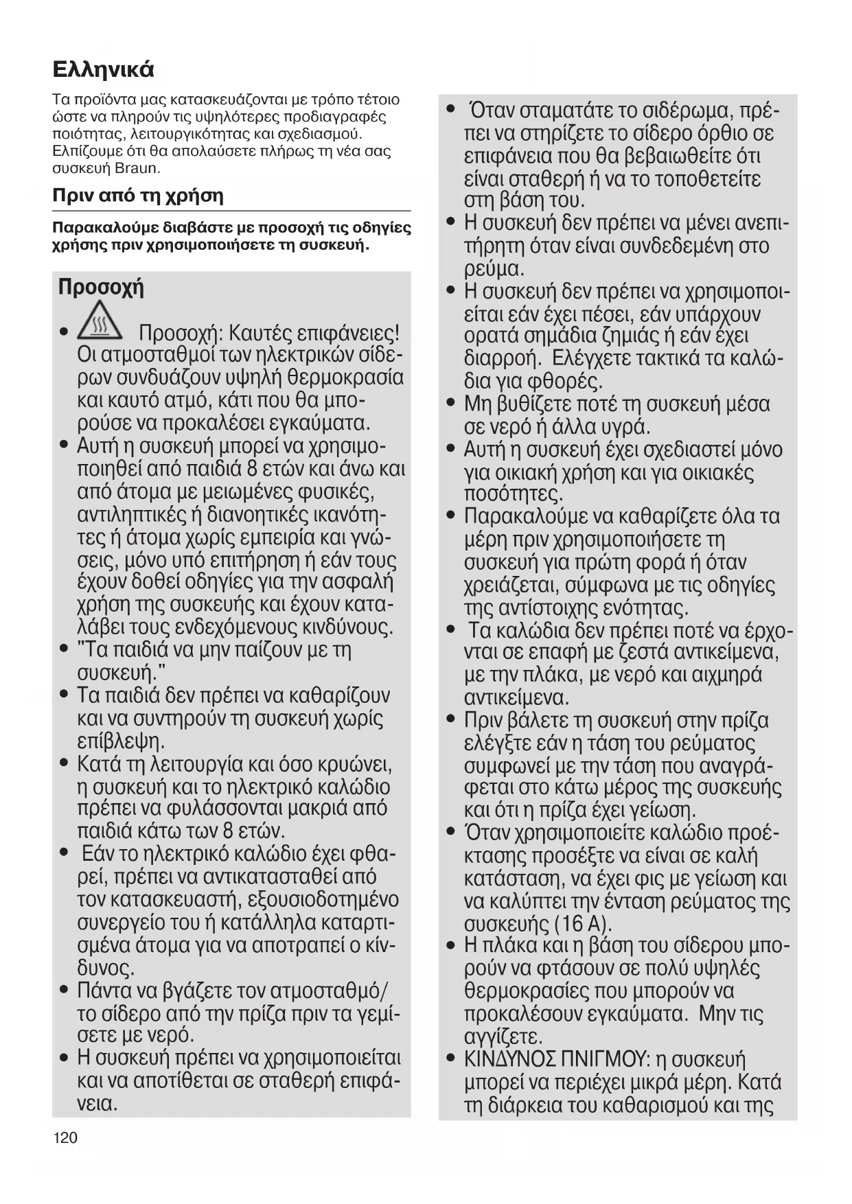 Προσοχή: Καυτές επιφάνειες! Οι ατμοσταθμοί των ηλεκτρικών σίδε- ρων συνδυάζουν υψηλή θερμοκρασία και καυτό ατμό, κάτι που θα μπο- ρούσε να προκαλέσει εγκαύματα.