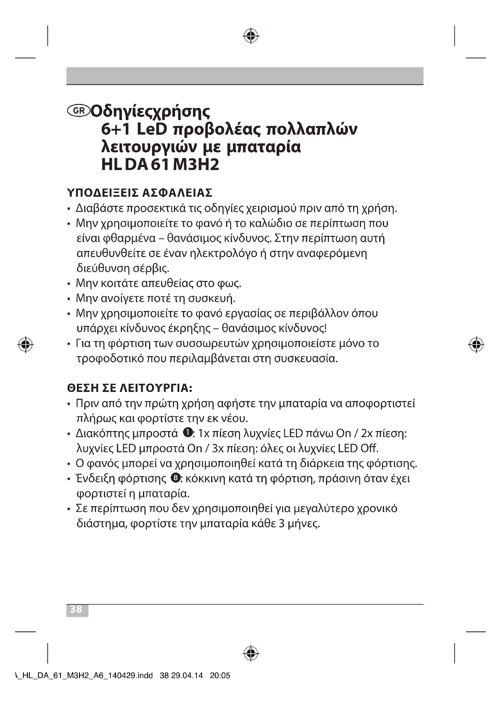 Οδηγίες χρήσης 6+1 LeD προβολέας πολλαπλών λειτουργιών με μπαταρία HL DA 61 M3H2 ΥΠΟΔΕΊΞΕΊΣ ΑΣΦΑΛΕΊΑΣ