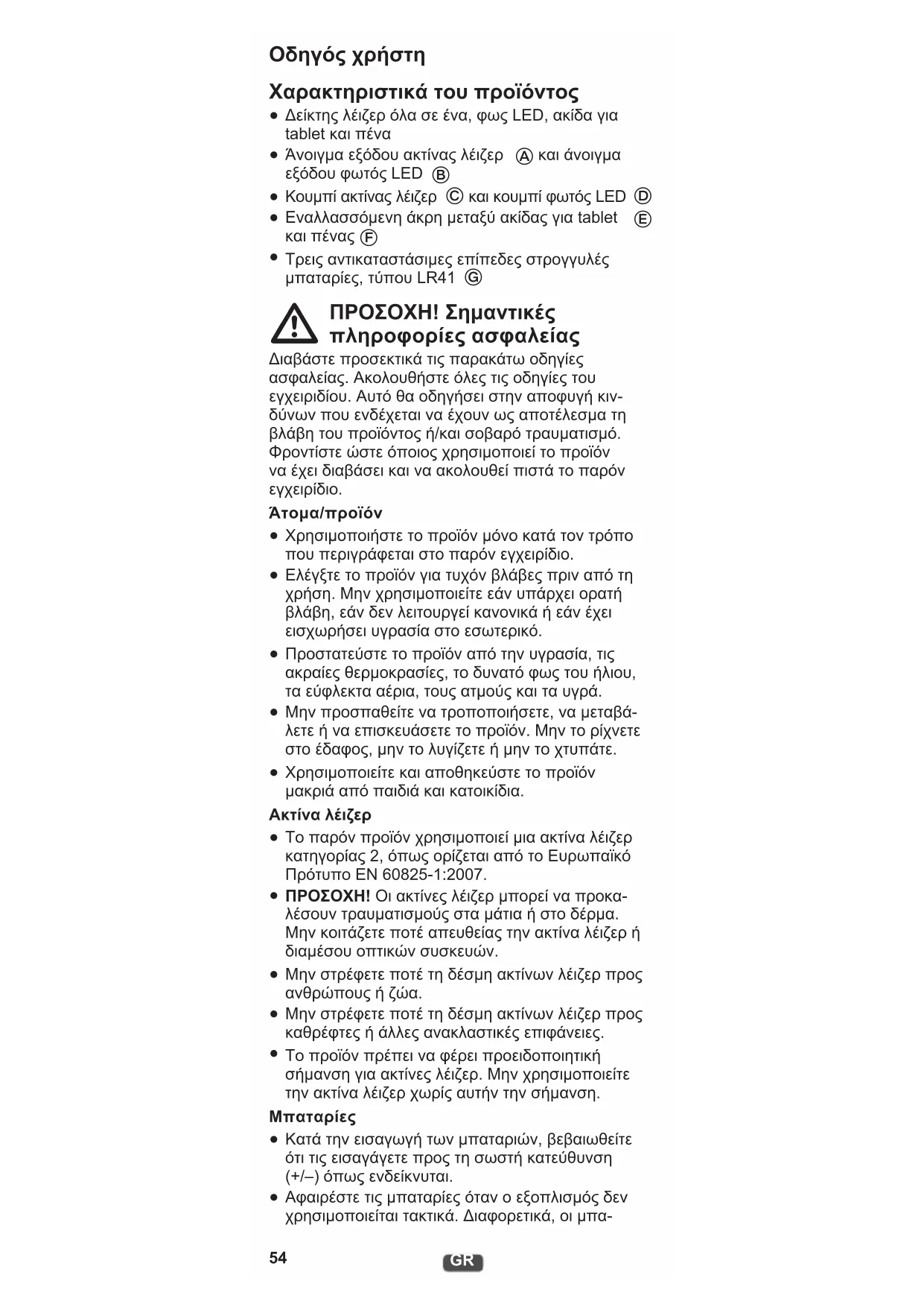 Χρησιμοποιείτε και αποθηκεύστε το προϊόν μακριά από παιδιά και κατοικίδια. Ακτίνα λέιζερ