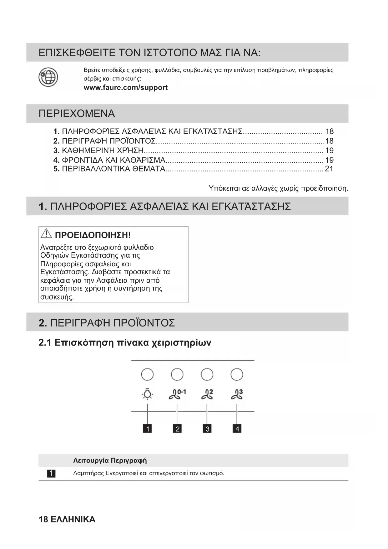 ΠΡΟΕΙΔΟΠΟΙΗΣΗ! Ανατρέξτε στο ξεχωριστό φυλλάδιο Οδηγιών Εγκατάστασης για τις Πληροφορίες ασφαλείας και Εγκατάστασης. Διαβάστε προσεκτικά τα κεφάλαια για την Ασφάλεια πριν από οποιαδήποτε χρήση ή συντήρηση της